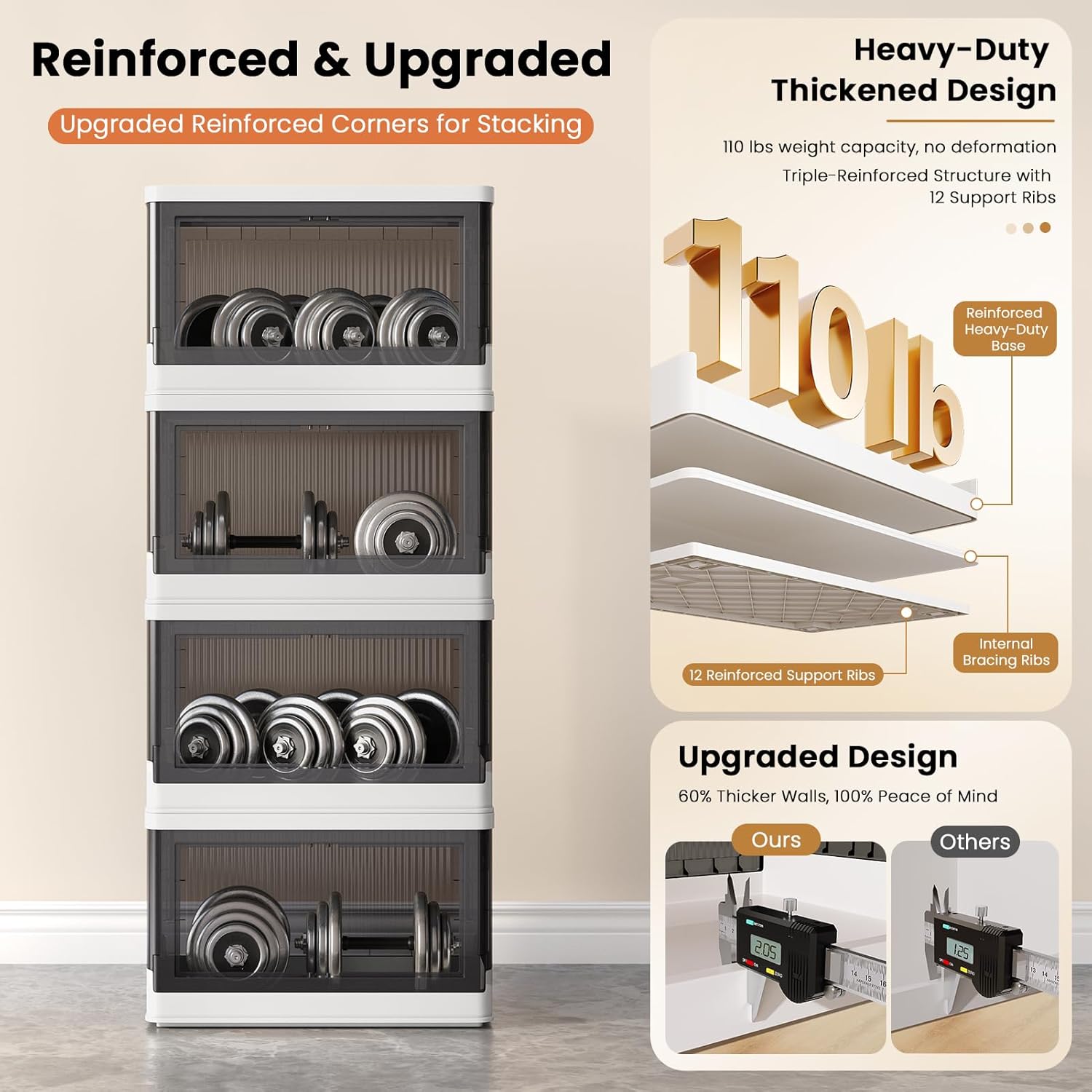 • Quick Assemble & Fold: Our storage containers can be assembled in 1 minute and folds down to 4 inches when not in use, easily tucking under beds/tight spaces—saves 80% of space. Heavy-duty PP plastic (2mm thick walls) supports 110 lbs (50 kg)/pack