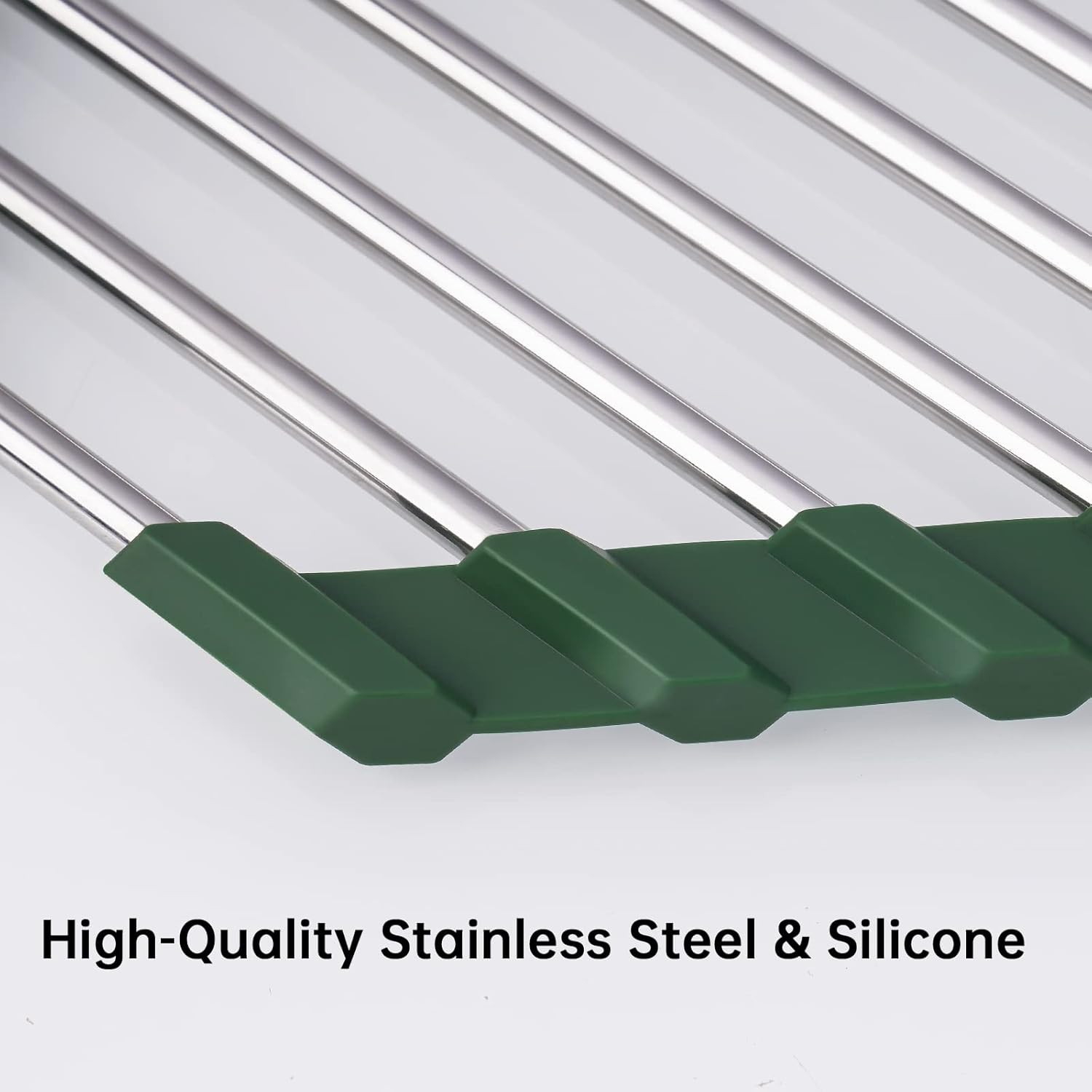 - ✔️【Food Grade Materials】Made of premium quality SUS304 stainless steel and BPA-free food safe silicone edges, this drying rack is waterproof, rust-proof, durable and scratch-resistant. Solid construction with non-slip silicone ends securely attached to stainless steel rods.