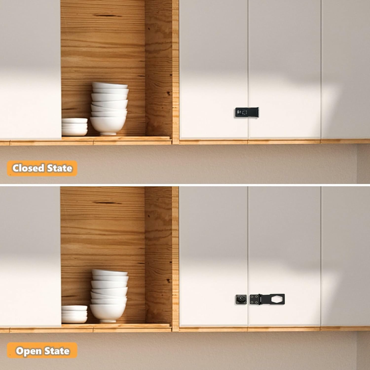 • 【Wide Applications】The locking hasp is suitable for installation in the place where you need to lock protect your house, property, and personal privacy. Such as all kinds of door, window, cabinet, drawer, furniture, pet cage, closets, cupboards, storage containers, sheds, storage bins, garage doors, tool boxes,sliding doors, wardrobes, fence,and etc.
