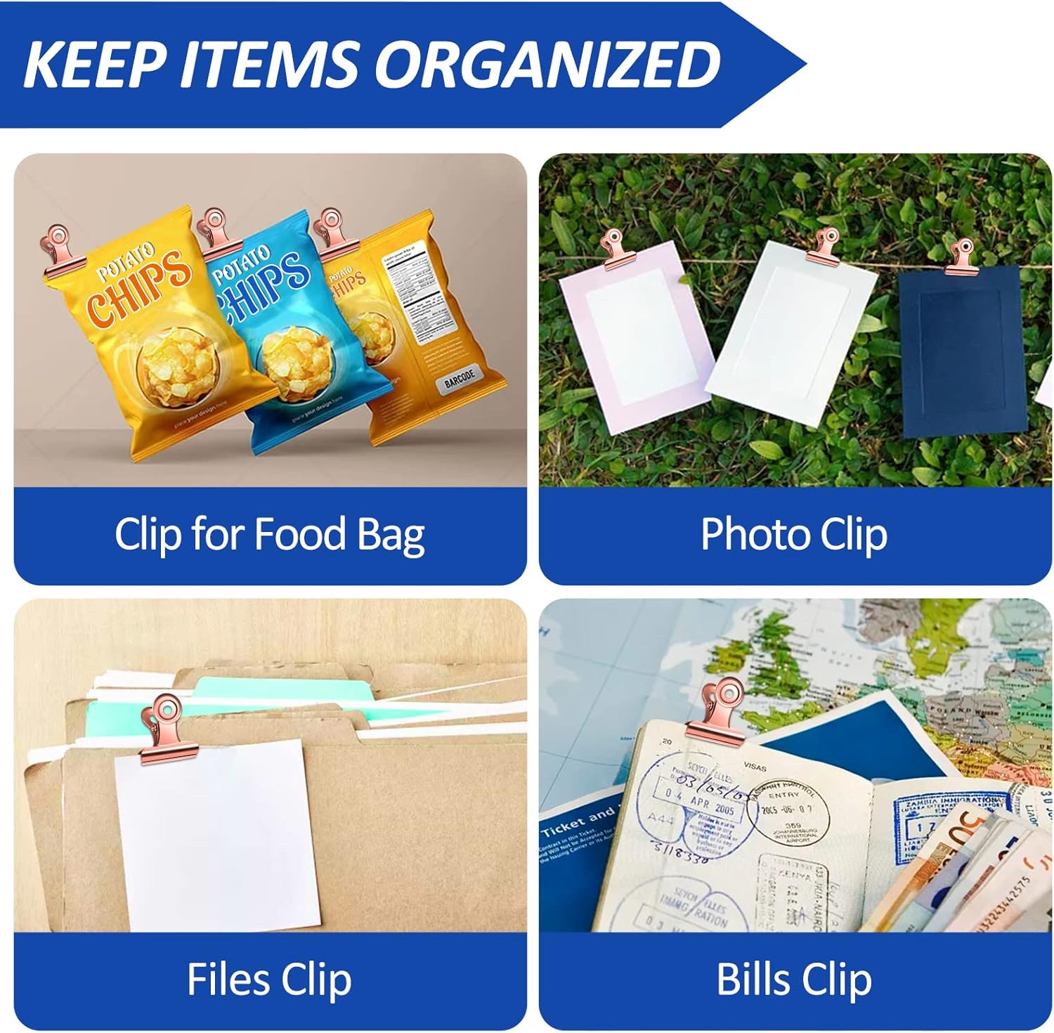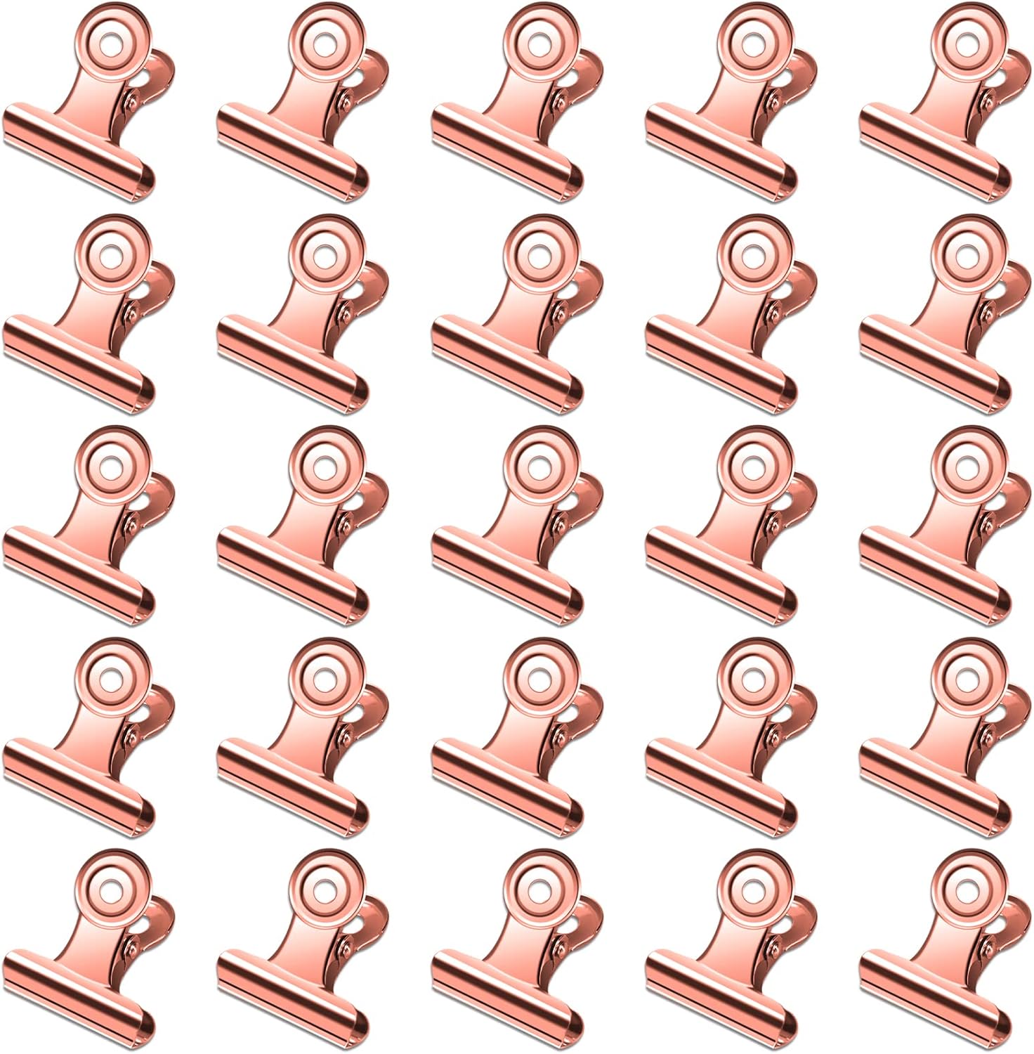 • Size: Each small hinge clip is 0.87 inch wide. Come with 30pcs rose gold bull clips, compact and portable, easy operation and quick clamping