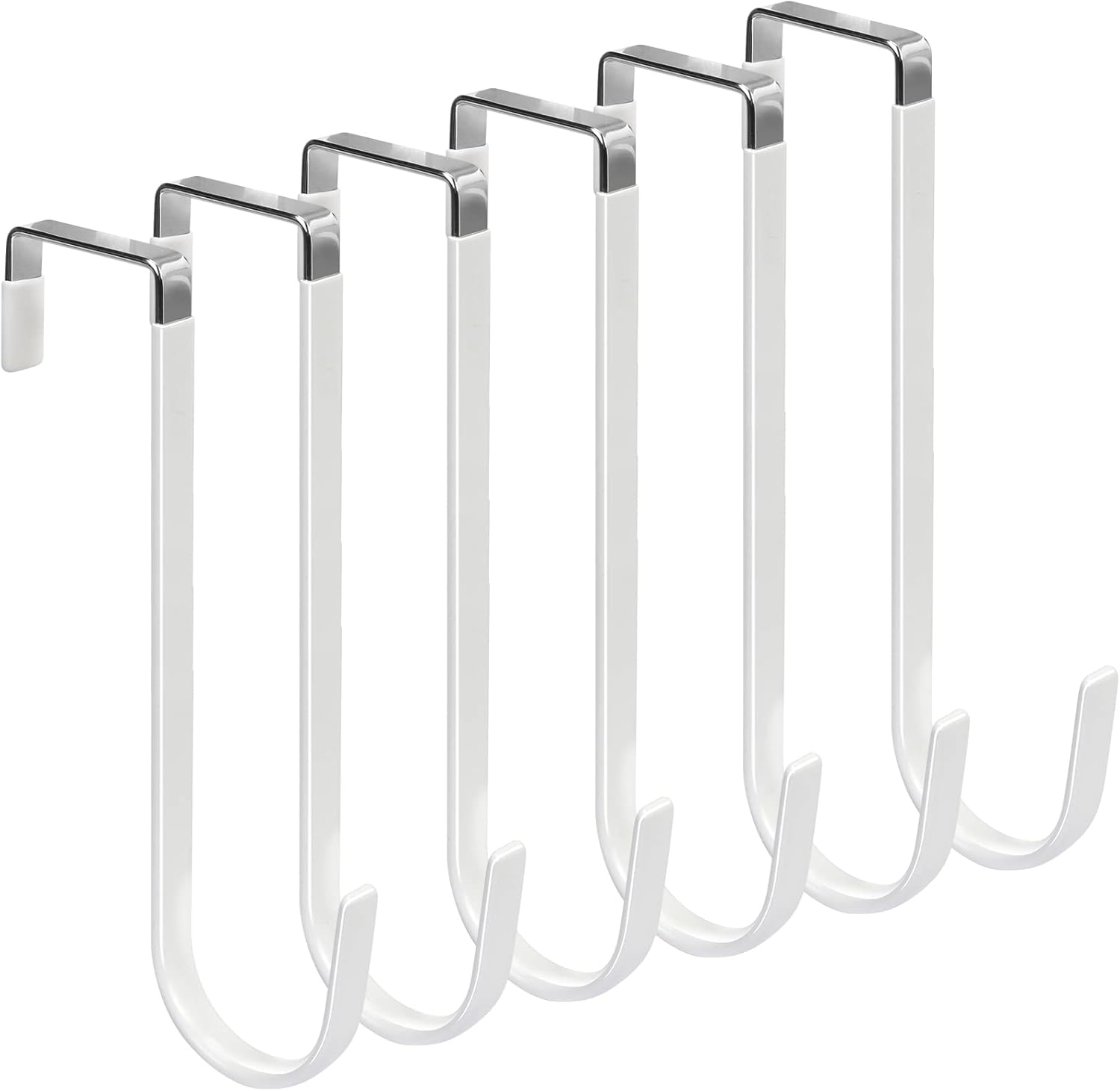 FYY Over The Door Hooks, 6 Pack Upgraded Long Door Hangers Hooks with Rubber Prevent Scratches Heavy Duty Organizer Hooks for Hanging Clothes, Towels, Hats, Coats, Bags White