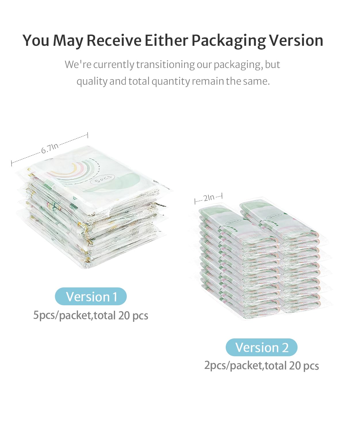 • Great For On The Go: Travel size small enough to carry in your purse or put in your bag.We're currently transitioning packaging — you may receive either the 5pcs/packet or 2pcs/packet version.Total 20 pcs, super value