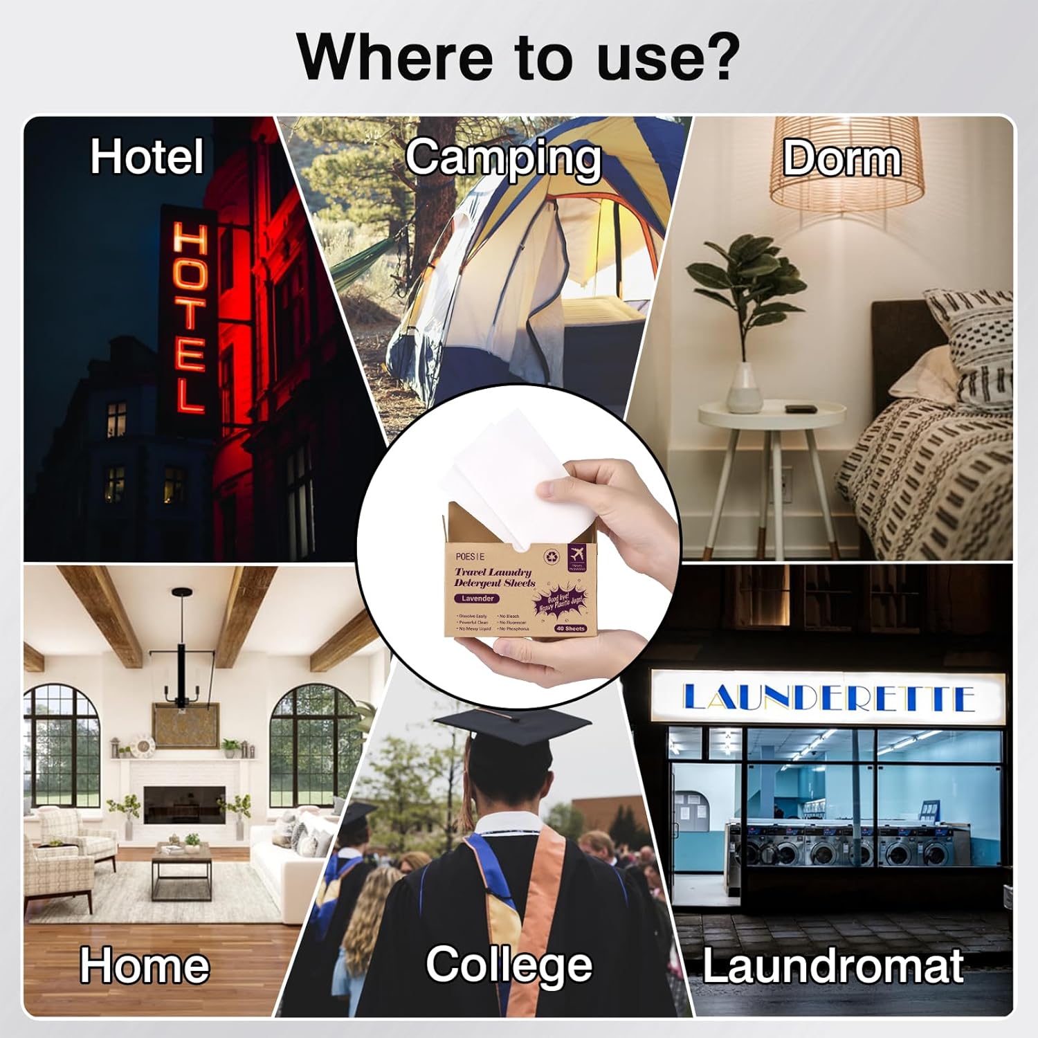 Poesie Travel Laundry Detergent Strips 40 Sheets Liquidless Laundry Soap Sheet for Travel Dorm Home Lavender
