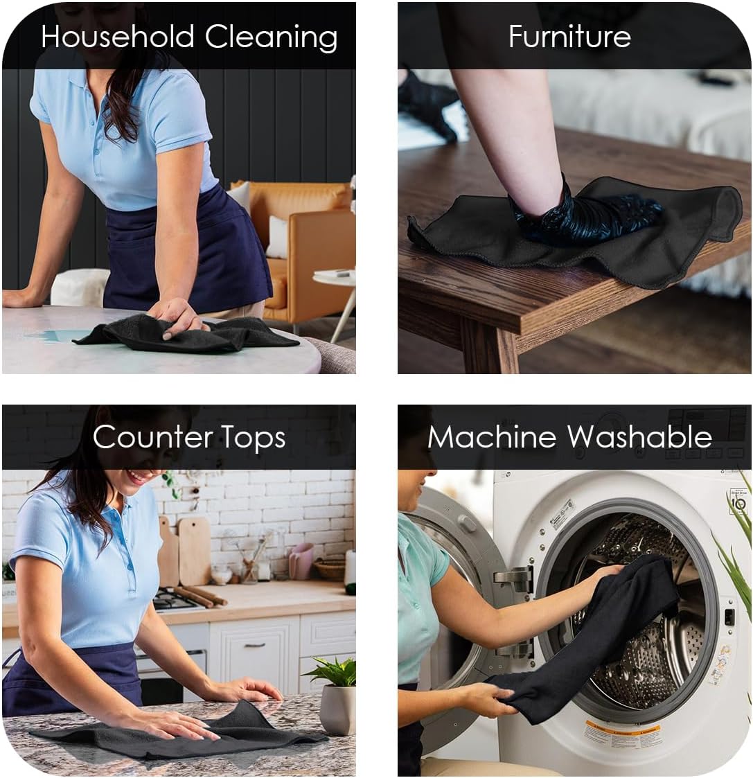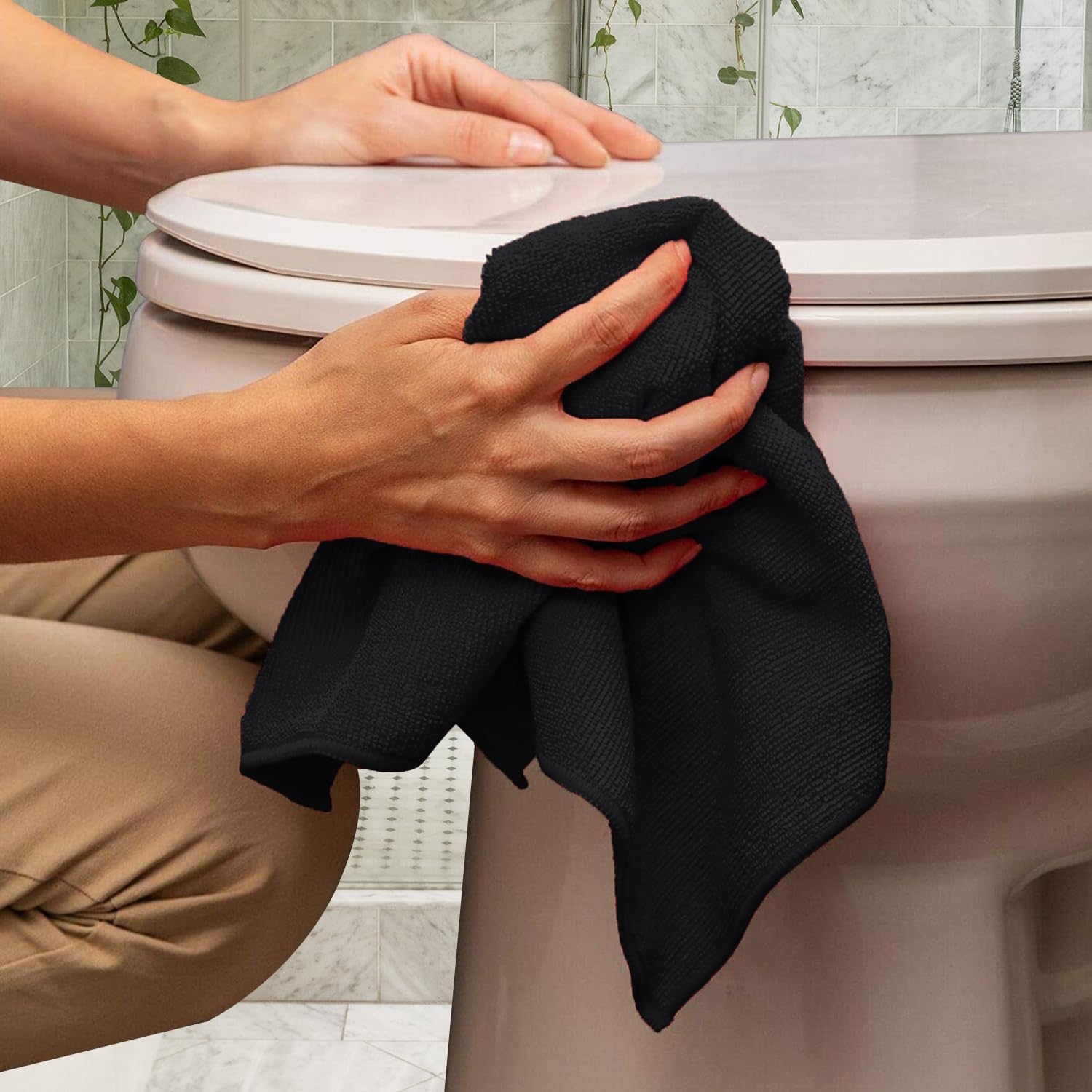 Avalon Towels Microfiber Cleaning Cloths (Value Pack of 36) Size 16" x 16", Highly Absorbent Cleaning Rags, Lint Free Cleaning Towels, Reusable and Washable, Microfiber Towels for Cars (Black)