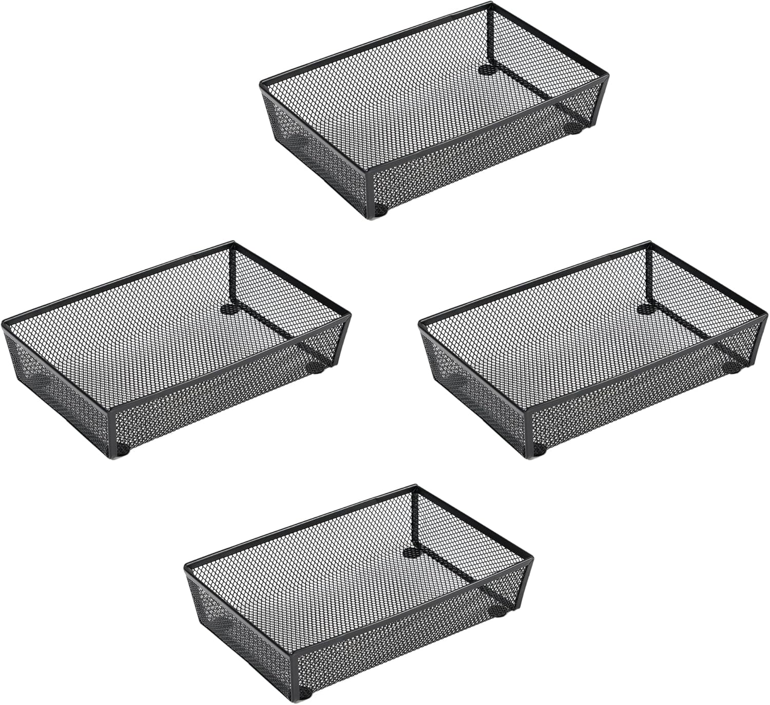 BYCY 4 Pack Silverware Drawer Organizer, Mesh Utensil Organizer for Kitchen Storage, Black Steel Metal Mesh Tray for Flatware Fork Spoon Knife (9 x 6 x 2 Inch,black)