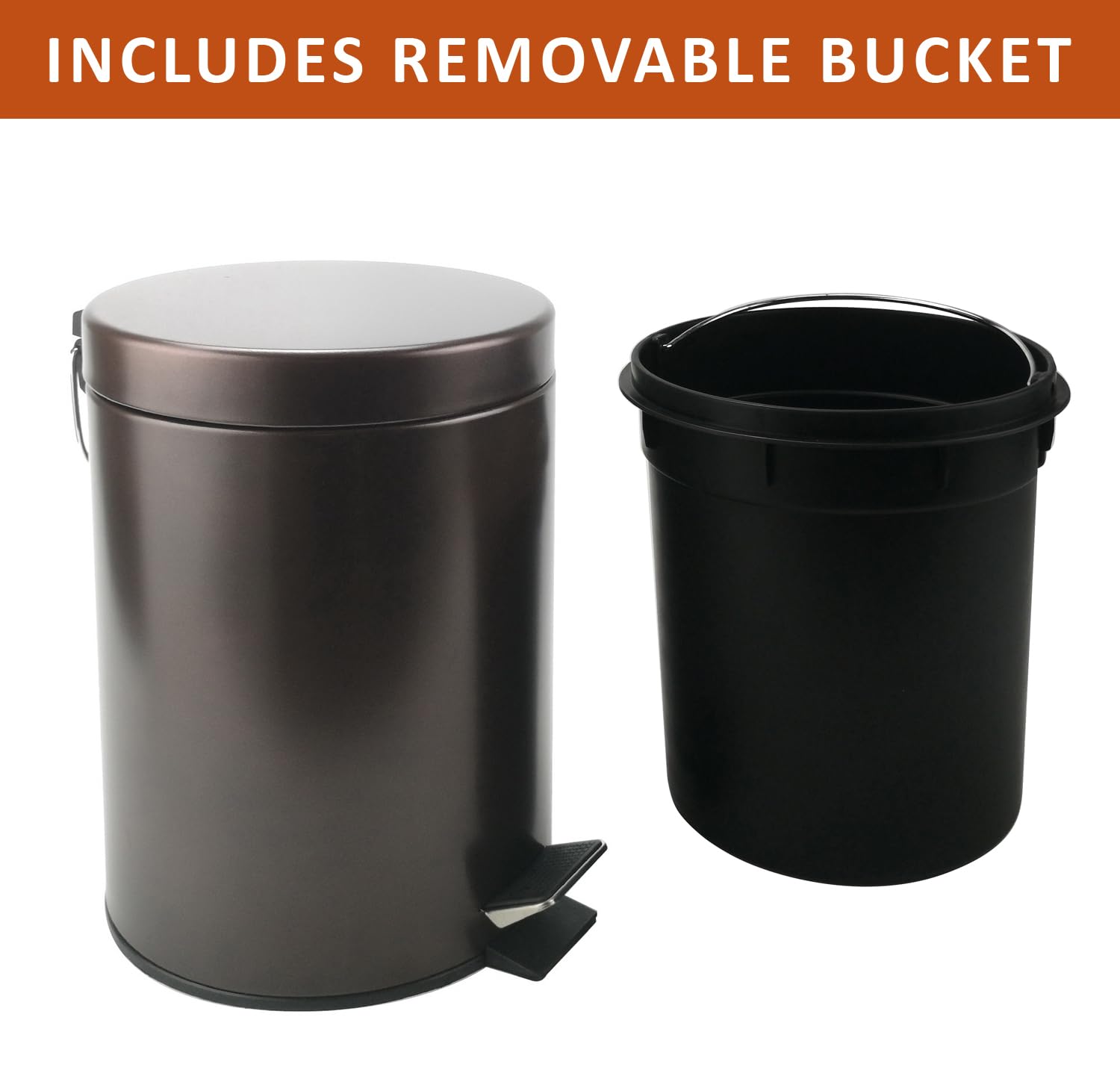 • Removable Liner Bucket: This step trash can includes a removable liner bucket with handle for easy cleaning, making it convenient to maintain a spotless environment. The liner allows for hassle-free disposal in any bathroom trash can, kitchen garbage can, or office garbage can.