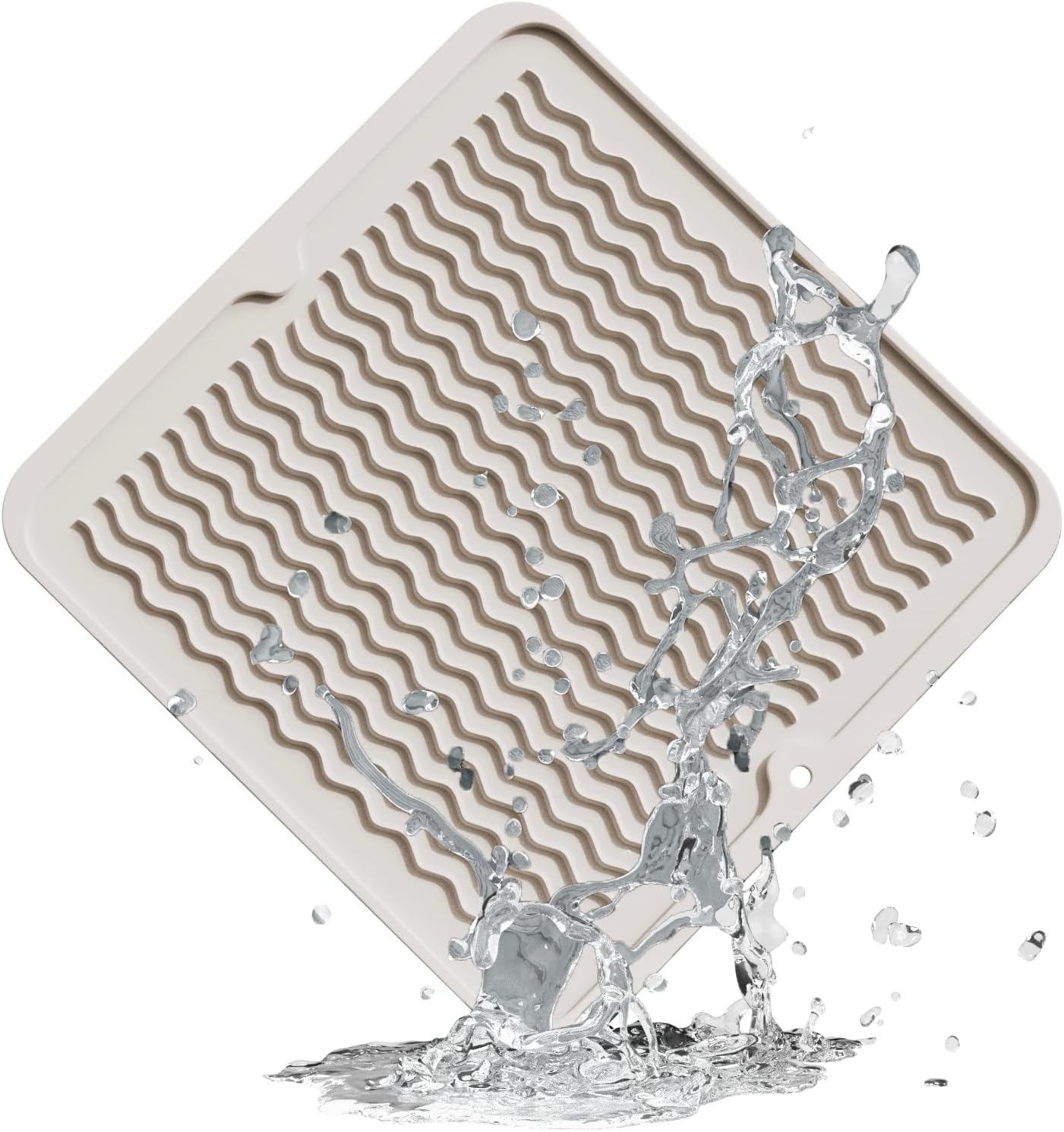 ZLR Silicone Dish Drying Mat for Kitchen Counter, Eco-Friendly Fast Dry Dish Mat, Easy Clean Multi Usage Drying Matt, Heat Resistant Trivet, 12" x 12" Middle, Cassava White