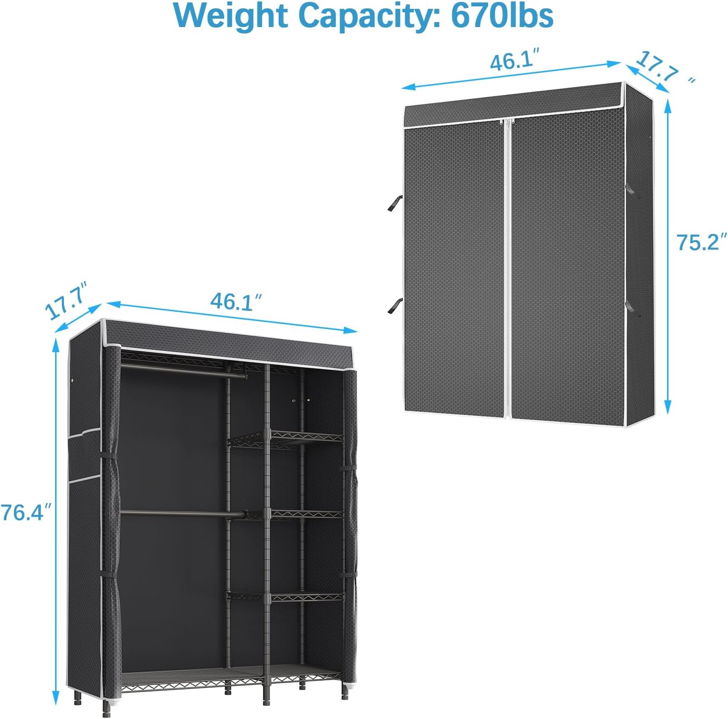 • 【Zippered Polyester Fabric Cover】Closet comes with upgraded polyester fabric cover, sturdy, wrinkle resistance, breathability keep garments dry. Easy to clean with damp cloth, and to keep your item away from dust
