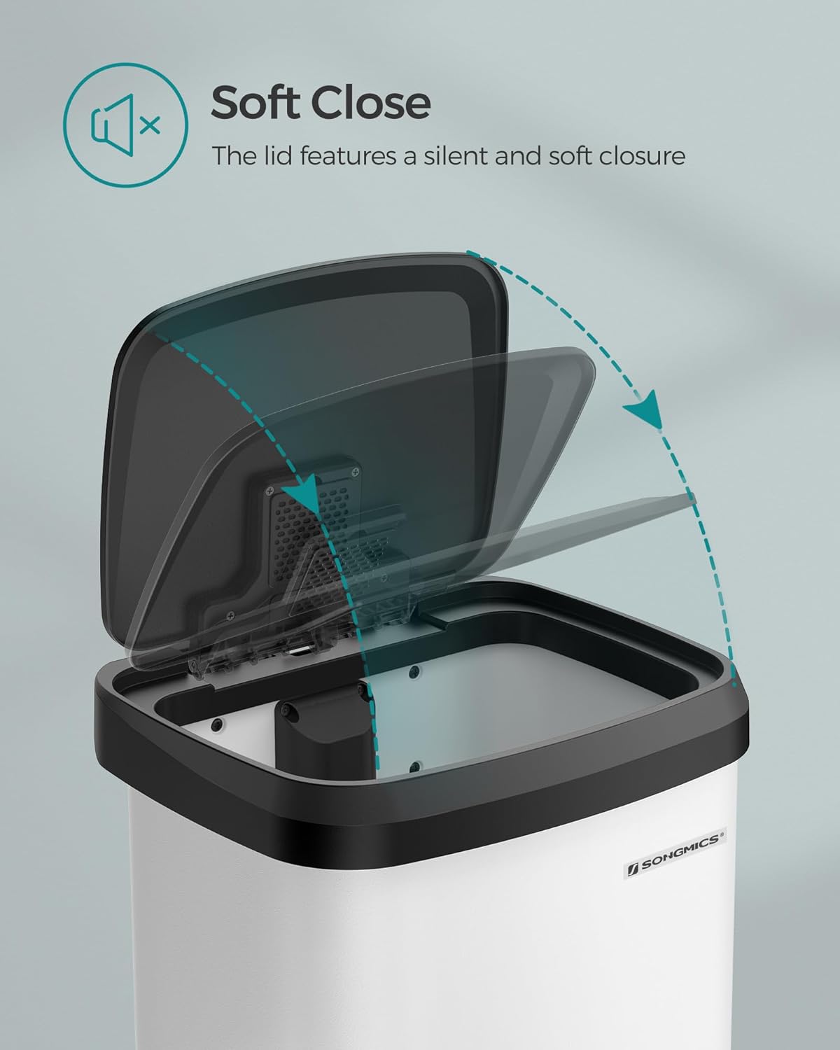 • [Soft-Close & Stay-Open] This garbage can has a lid that closes quietly and gently without slamming shut. Additionally, you can easily keep the lid open by manually opening it to a catch point when dealing with large clean-ups