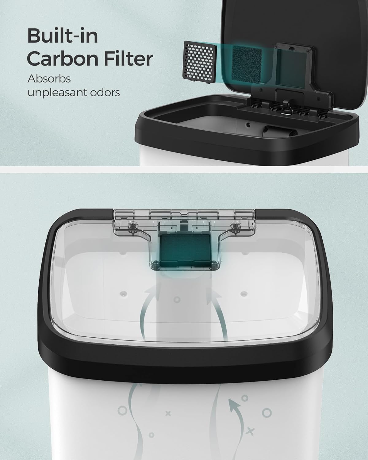 • [Thoughtful Detailing] The carbon filter in the lid helps absorb unpleasant odors, keeping your kitchen smelling fresh. Included are 15 liner bags (12-14.5 gallons) that perfectly fit this kitchen can