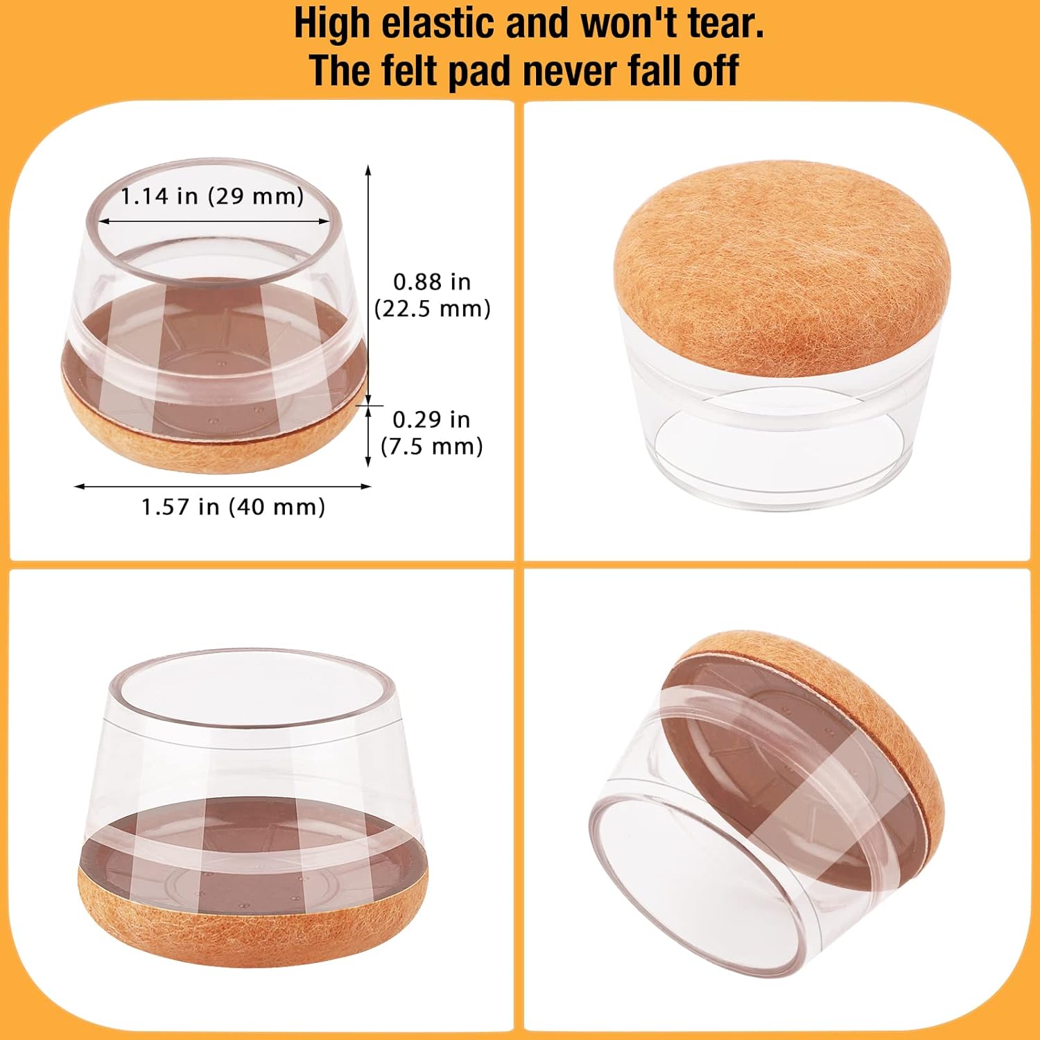 • 【Upgrade New Design】: 360° full felt pad bottom wrapped, which helps the felt bottom be able to touch the floor at any angle, preventing scratching the floor. Our chair leg floor protectors do not use gel. The bottom felt pad and the silicone chair leg floor protectors are integrated with a high-pressure machine to ensure that they will never fall off.