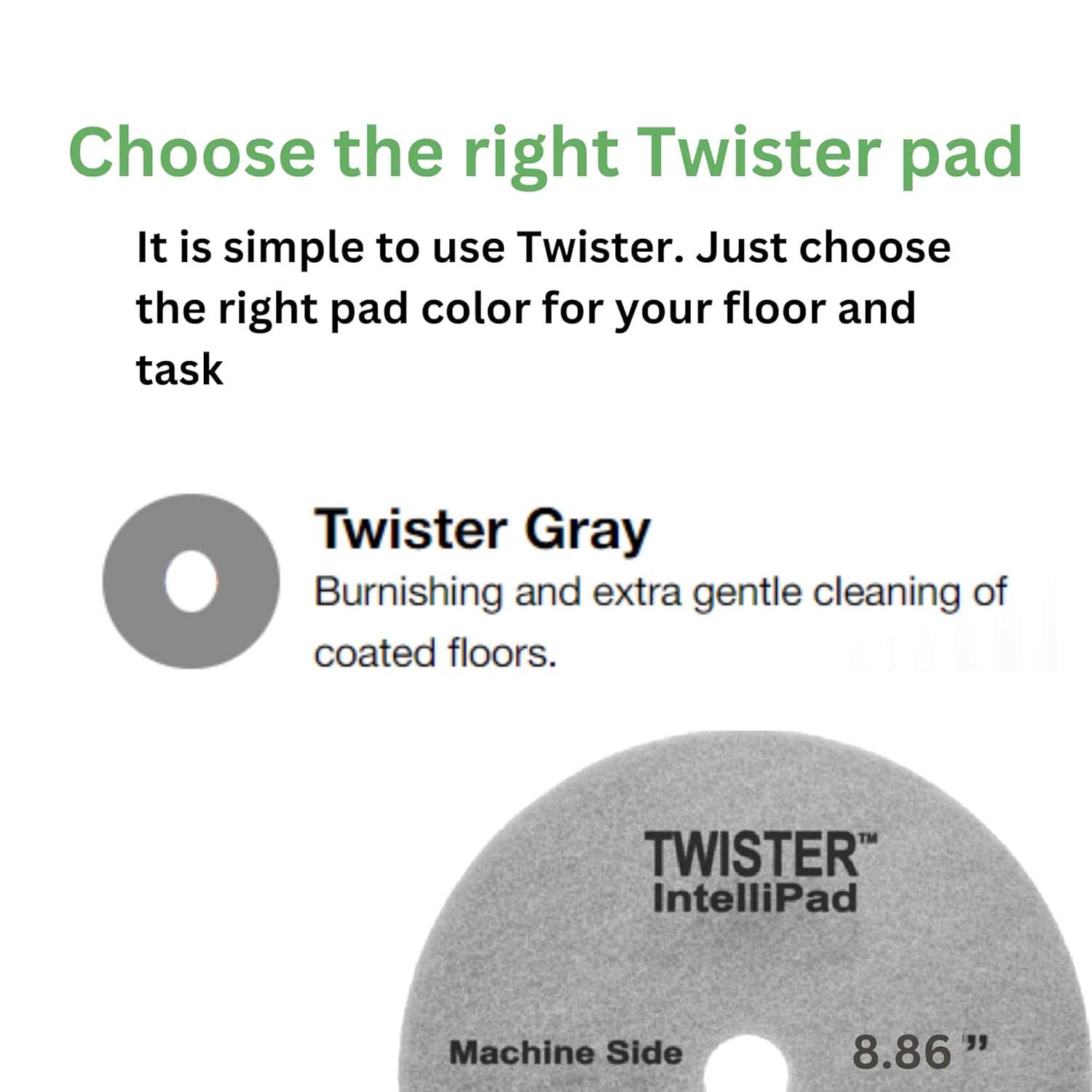 • Twister SuperGloss is designed for coated floors in high traffic areas and productes a super high gloss finish when burnishing floors. Fully integrated with TASKI machines and Diversey chemicals to deliver the highest cleaning efficiency available
