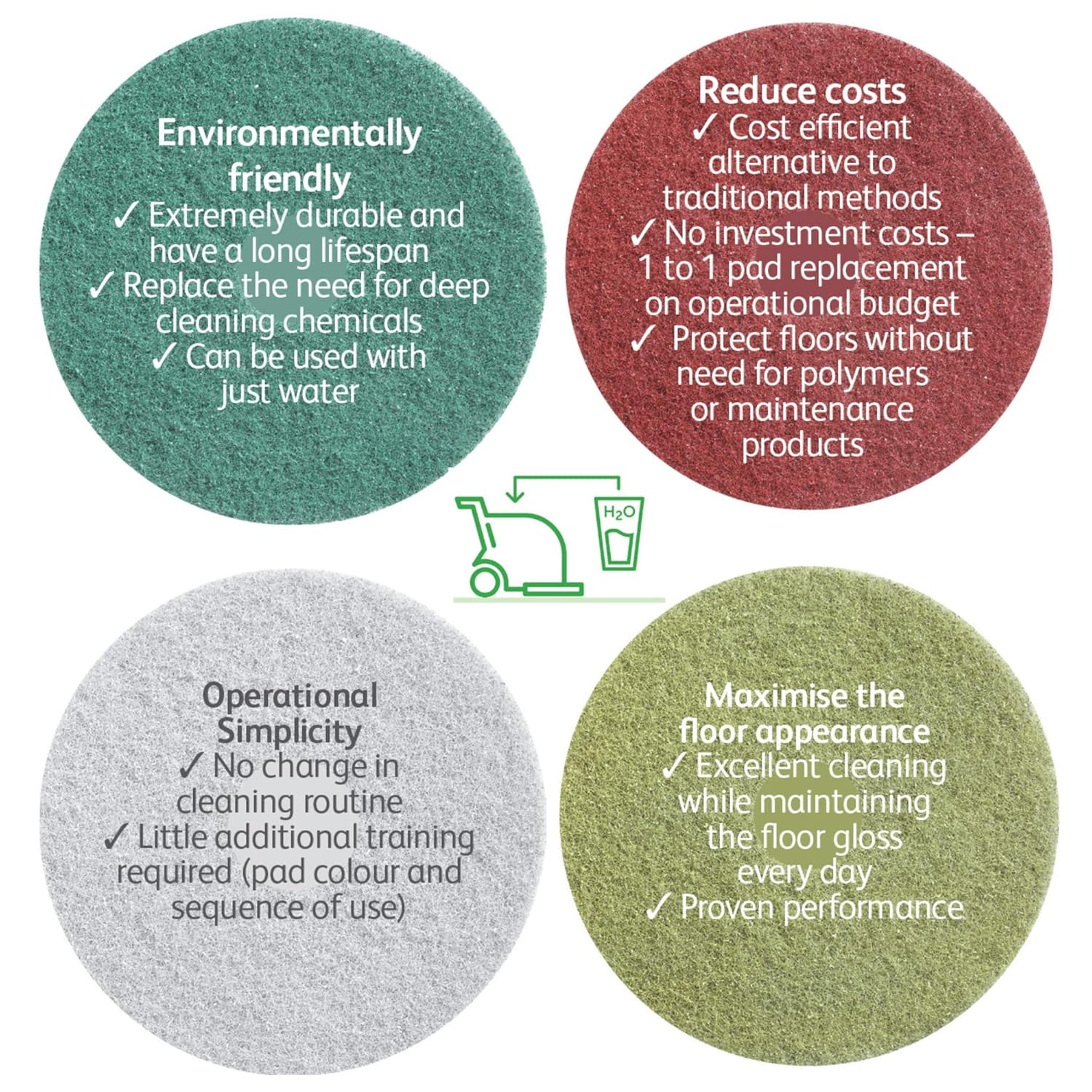 • For daily cleaning with auto scrubber and single disc machines (150rpm to 330rpm). Burnishing or polishing with single disc machines (400rpm to 3000rpm - UHS machine).