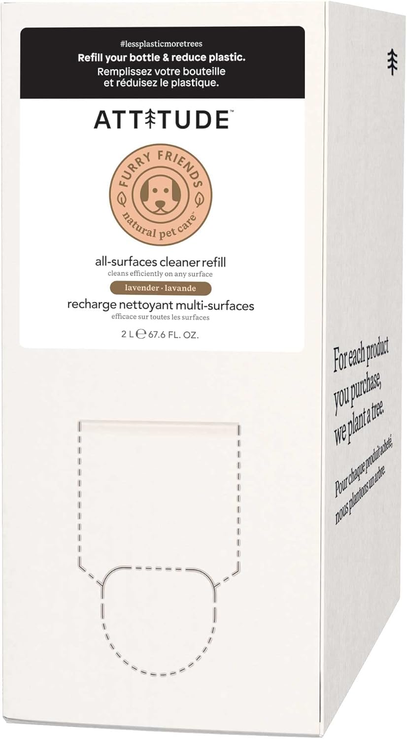 ATTITUDE All Surface Cleaner for Pets, Plant and Mineral-Based Ingredients, Vegan and Cruelty-free, Bulk Refill, Lavender, 67.62 Fl Oz