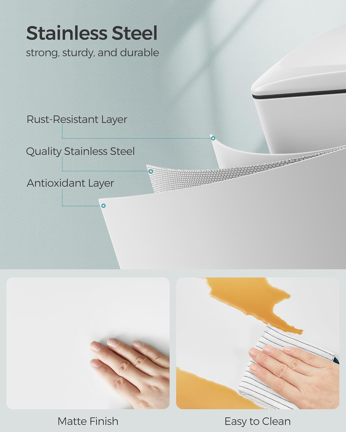• [Easy Cleaning & Modern Design] This stainless steel trash can is rust-resistant and easy to clean with a damp cloth. This trash bin has a white finish with a sleek modern look that easily matches any decor