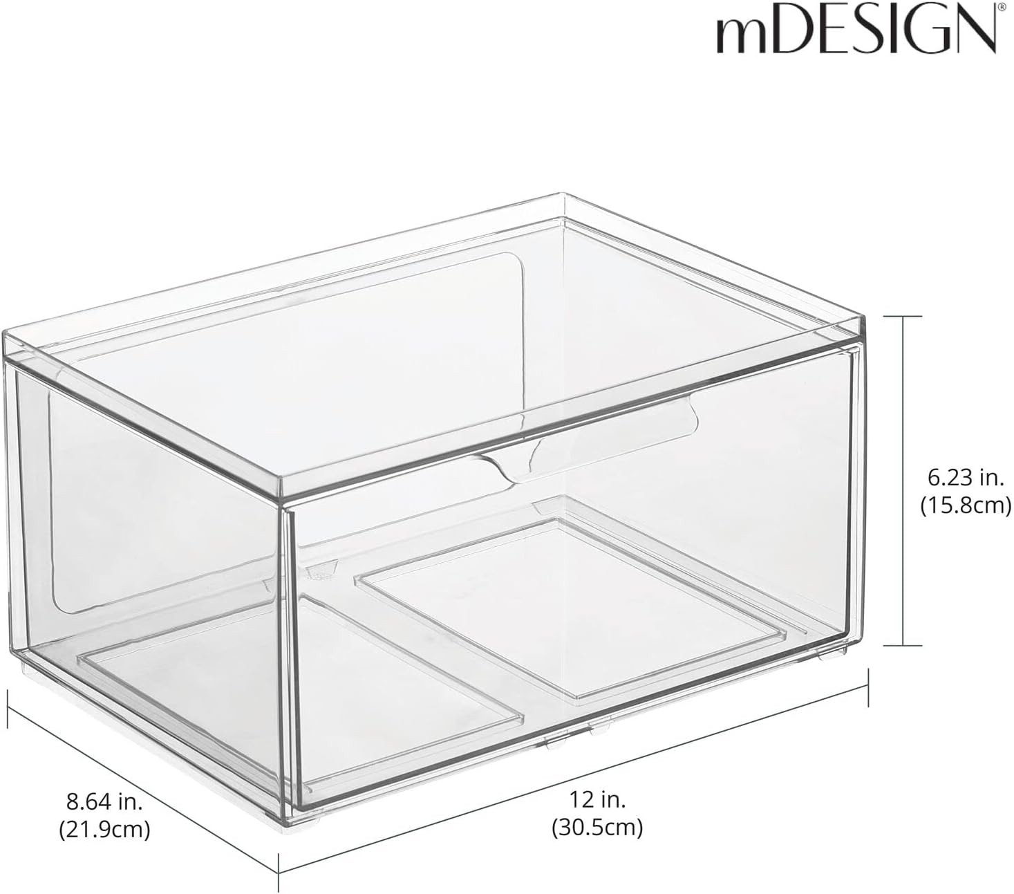 mDesign Plastic Wide Stackable Kitchen Storage Organizer Bin Containers with Front Pull Drawer for Cabinet, Pantry, Fridge, Freezer, Shelf, Refrigerator Organization, Lumiere Collection, 4 Pack, Clear