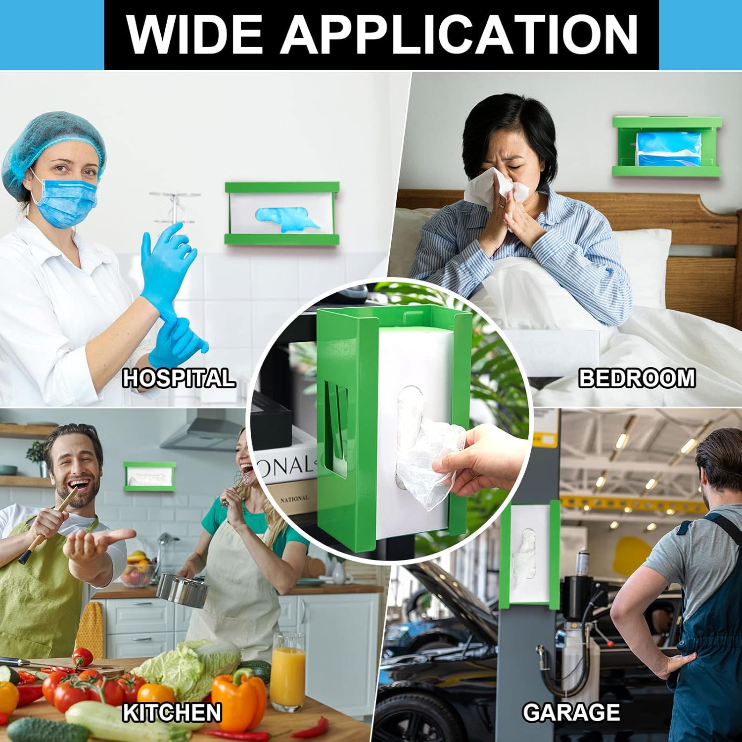 Lounsweer 2 Pcs Magnetic Glove Dispenser Holders Wall Mount Boxes of Gloves Commercial Quality Towels Wipes Paper Tissue Box Holder Kitchen Fridge Office Workshops Garage Tool Hospital(Green)