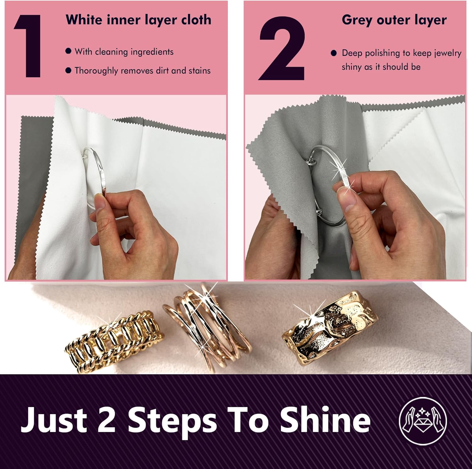 • 【TWO STEP SYSTEM】 The multi-layer of the sterling silver cleaning cloth easily brings your beloved jewelry back to its beautiful shine. First, use the white interior layer with special cleaning ingredients to remove the dirt thoroughly. Next, use the grey/black outer layer to polish and shine