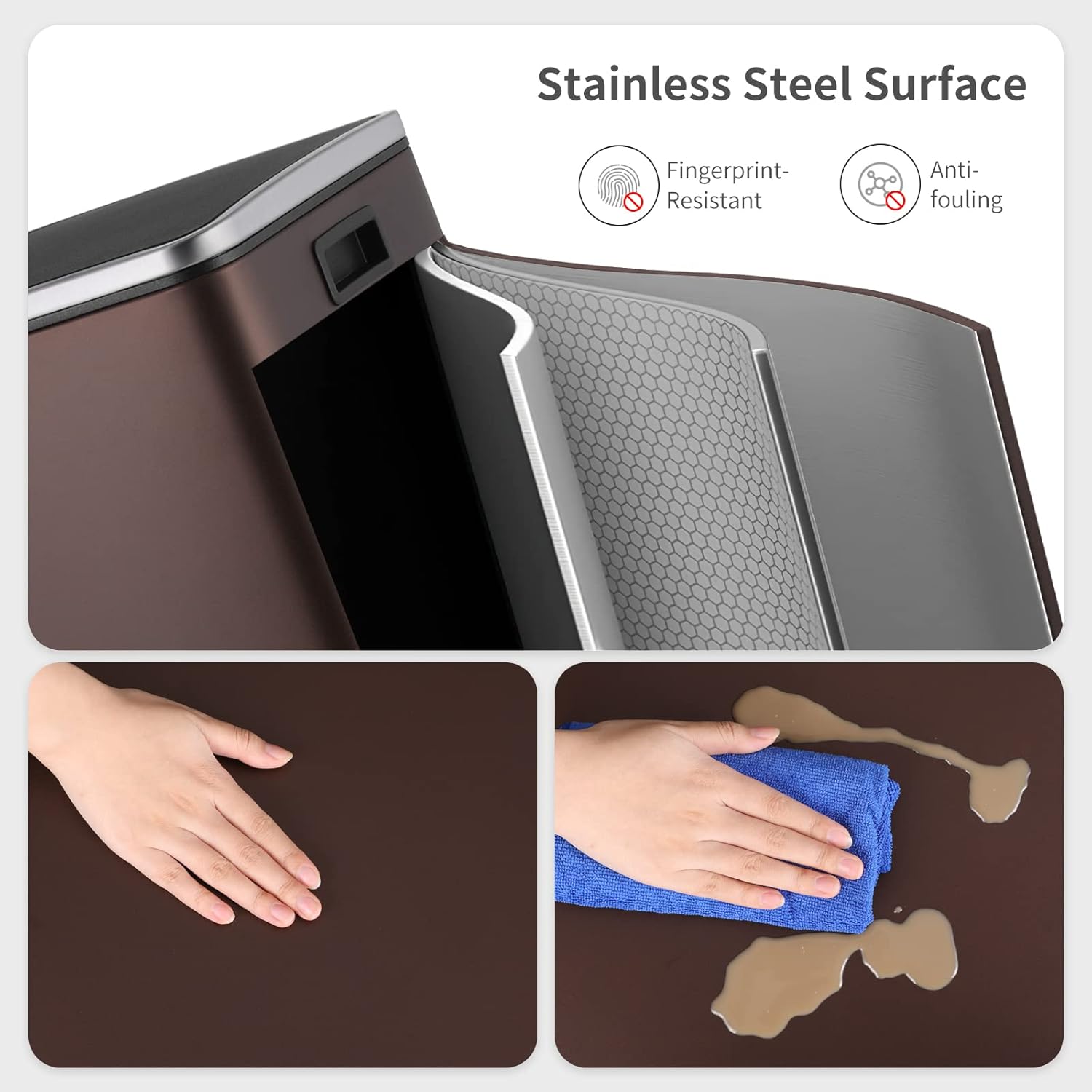 • 2*8 GALLONS COMPARTMENTS: Trash can has two independently compartments for trash and recyclables, making it easy to sort waste.