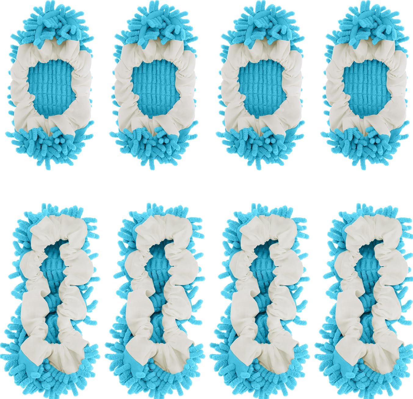 8 Pcs Mop Slippers Socks Floor Cleaning,Microfiber Shoe Covers dust Washable Reusable for Woman Man House Kitchen (Blue)