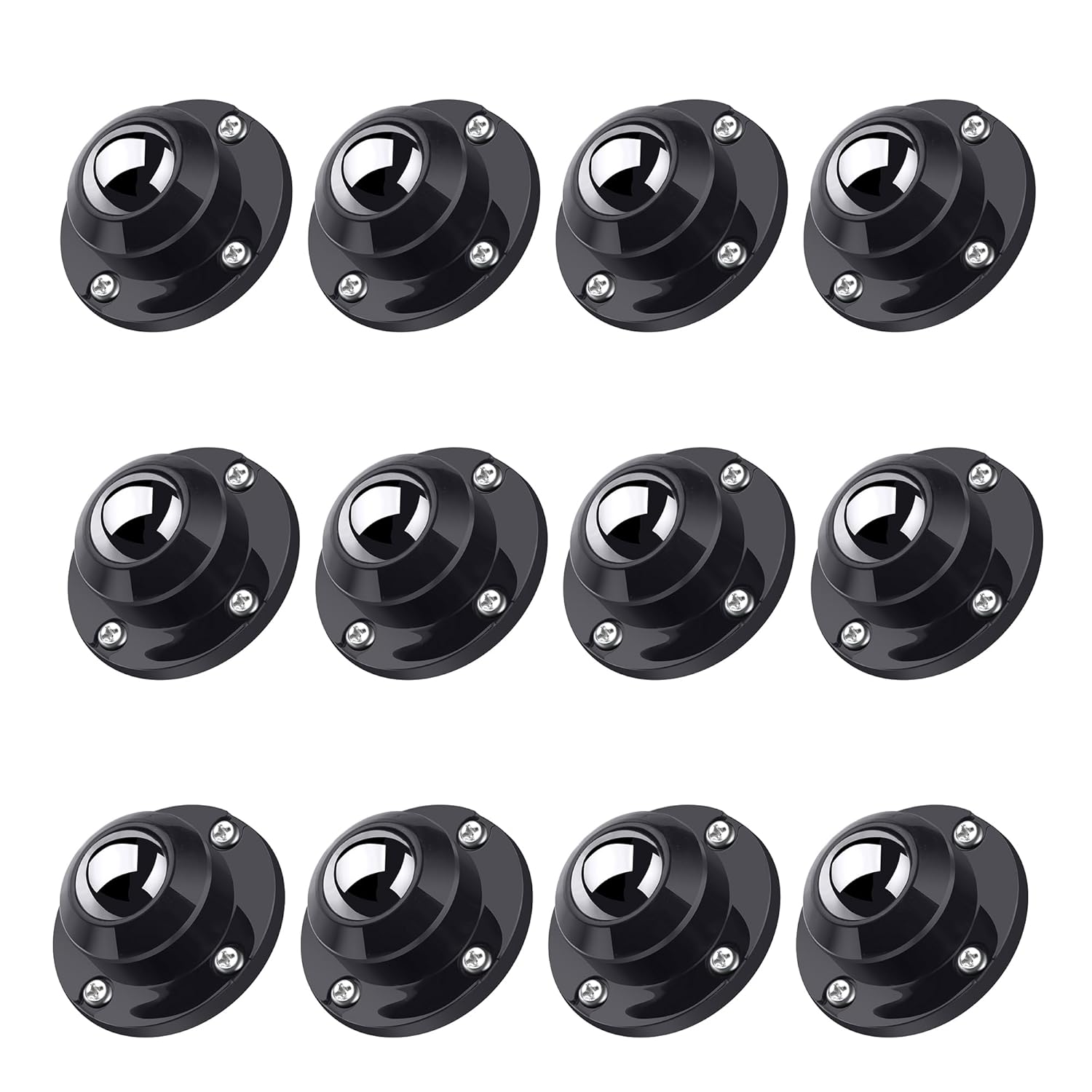PlusRoc 12 Pack Self Adhesive Caster Wheels 1 Inch for Furniture Mop Bucket, Load Capacity 28LBS Per Wheel, Low Profile Swivel Wheels for Small Appliance Storage Bins