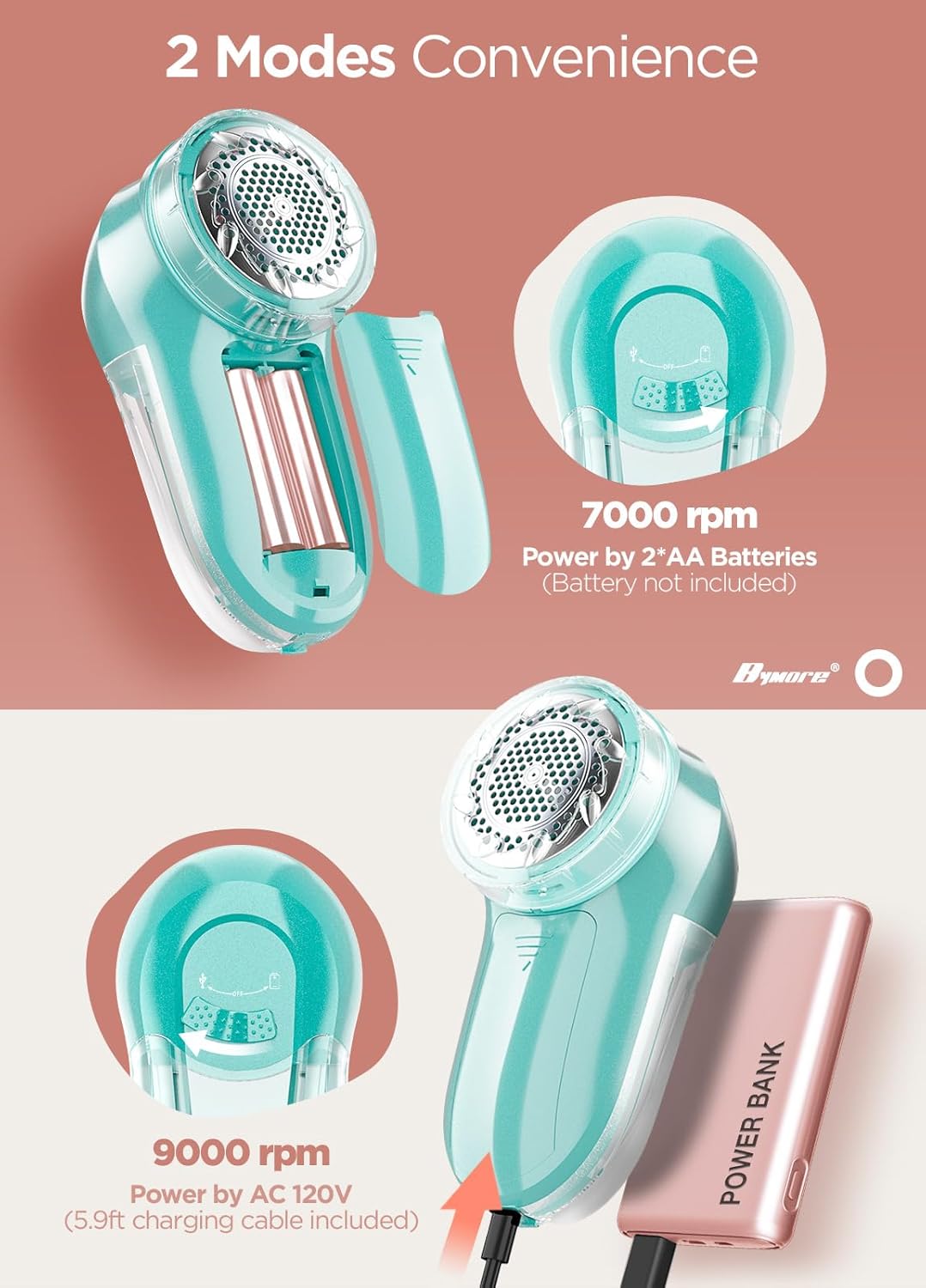 • 2IN 1 Sweater Shaver: Handy batteries travel friendly or 6FT AC to meet the convenience demand by simple slide left or right on the sweat shaver