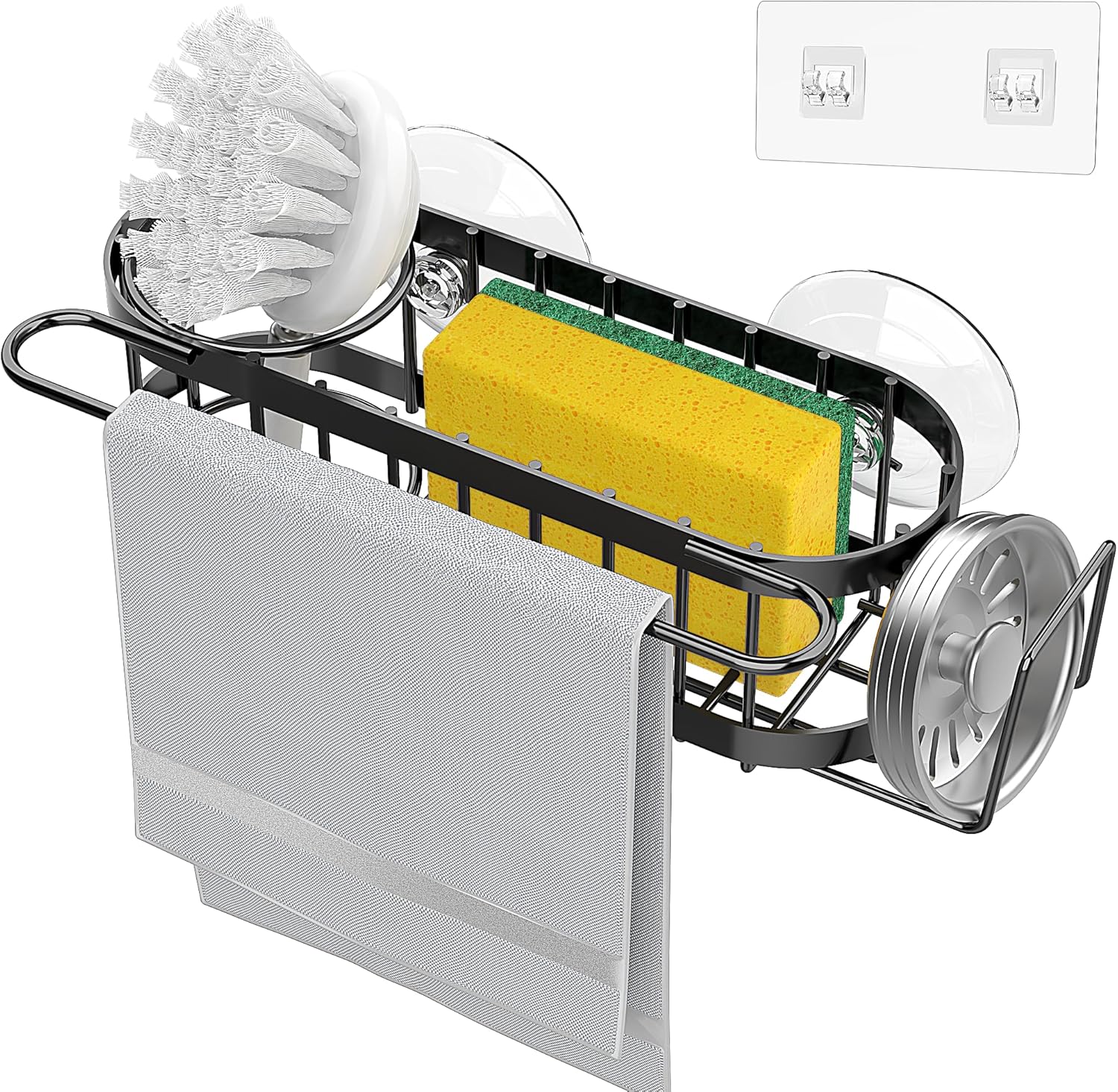 Cisily Kitchen Sink Caddy Sponge Holder in The Sink, Stainless Steel Kitchen Sink Organizer, Brush Holder, Dish Cloth Hanger, Sink Stopper Holder with 2 Installation Ways (Suction & Adhesives