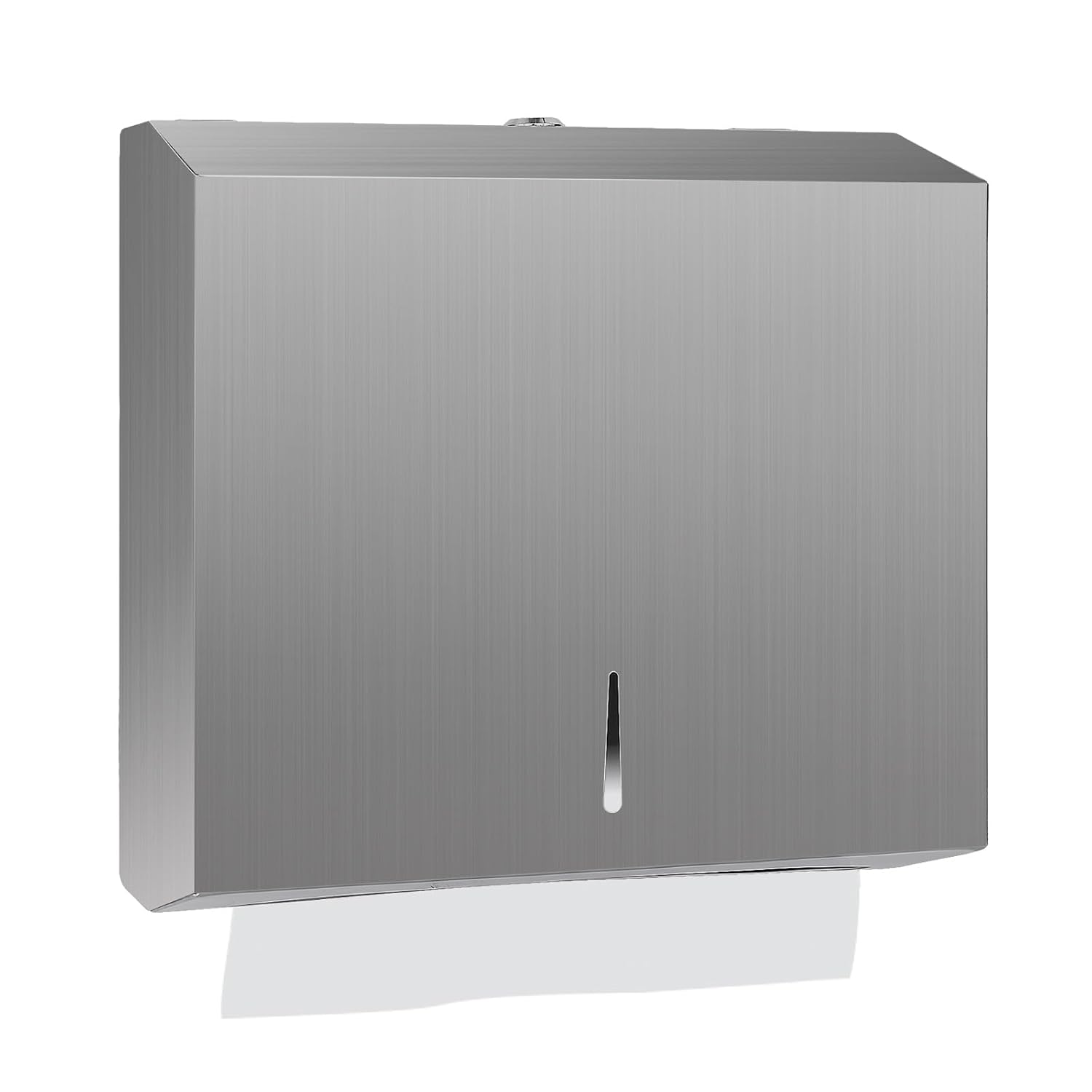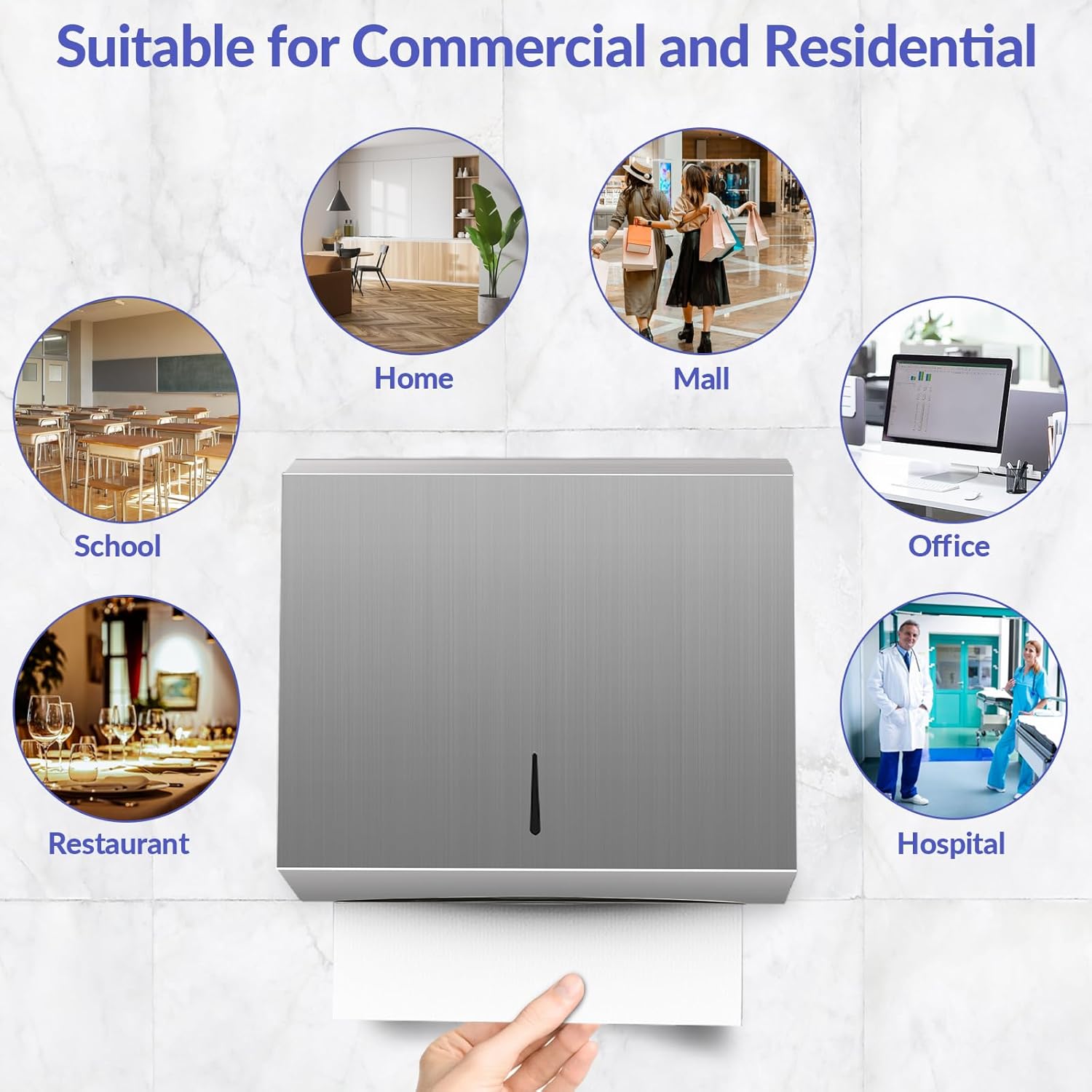 Paper Towel Dispenser Wall Mount, Brushed Stainless Steel Commercial Paper Towel Holder with Lock, Large Capacity 250 C Fold/300 Multifold Towels