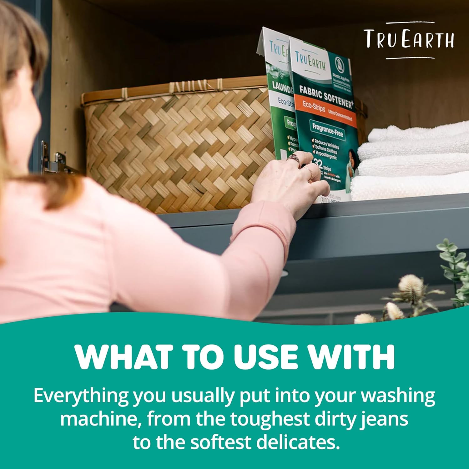 Tru Earth Fabric Softener Strips for Washing Machine, Alternative to Fabric Softener Liquid and Pods, Unscented Fragrance Free, Up to 64 Loads Per 32-Count