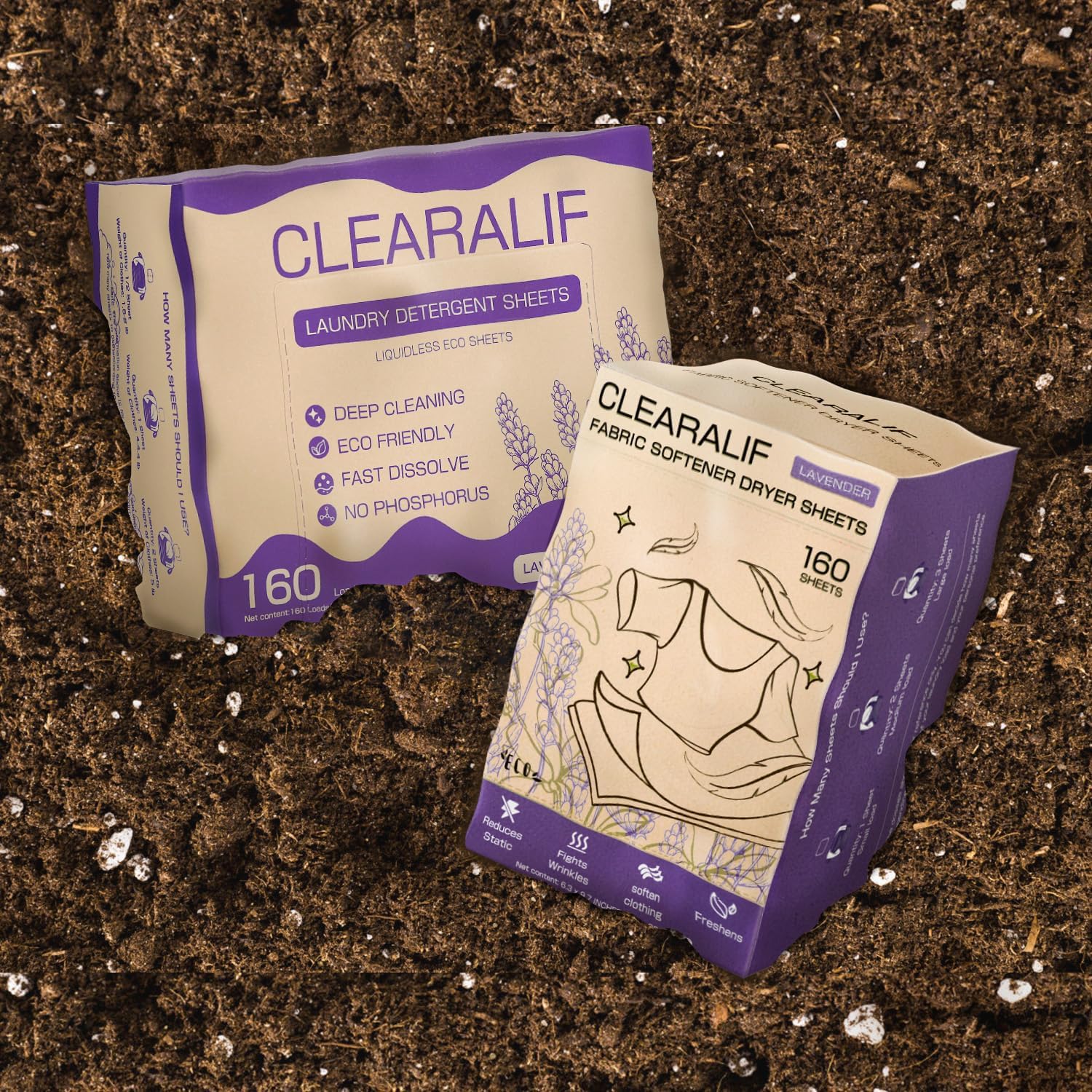CLEARALIF All in One Laundry Detergent Sheets Kit, Lavender Scent, 160 Loads Laundry Sheets + 160 Drying Sheets, Laundry Set Great for Travel, Softener Sheets Eco Package Friendly & Hypoallergenic