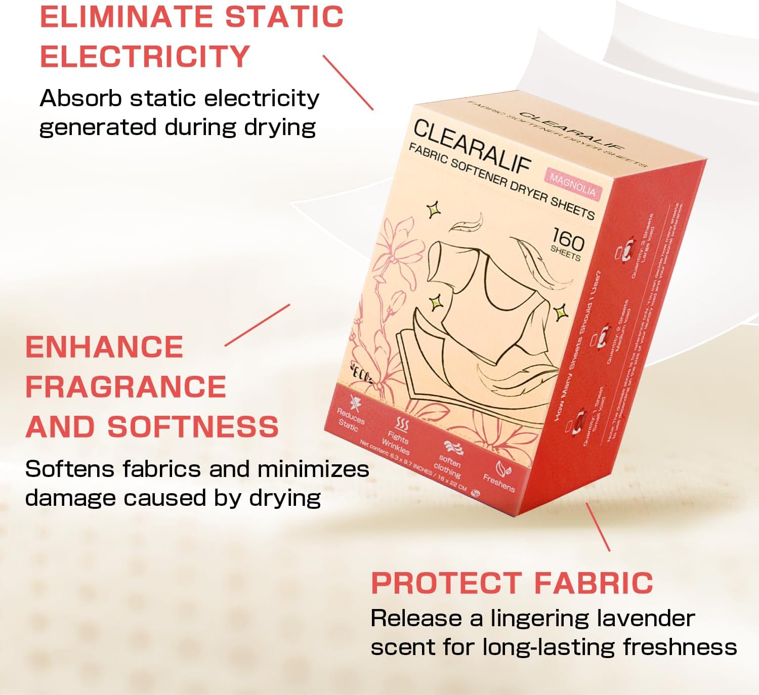 CLEARALIF All in One Laundry Detergent Sheets Kit, Magnolia Scent, 160 Loads Laundry Sheets + 160 Drying Sheets, Laundry Set Great for Travel, Softener Sheets Eco Package Friendly & Hypoallergenic