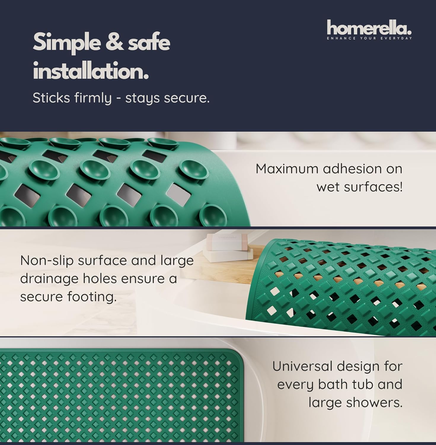 homerella® Bathtub Mat Non Slip 35x16, Incl. Hooks for Drying, Extra Long, 100% BPA Free, Shower Mat Non Slip Anti Mold, Machine Washable, Shower Mats for Inside Shower Mildew Resistant