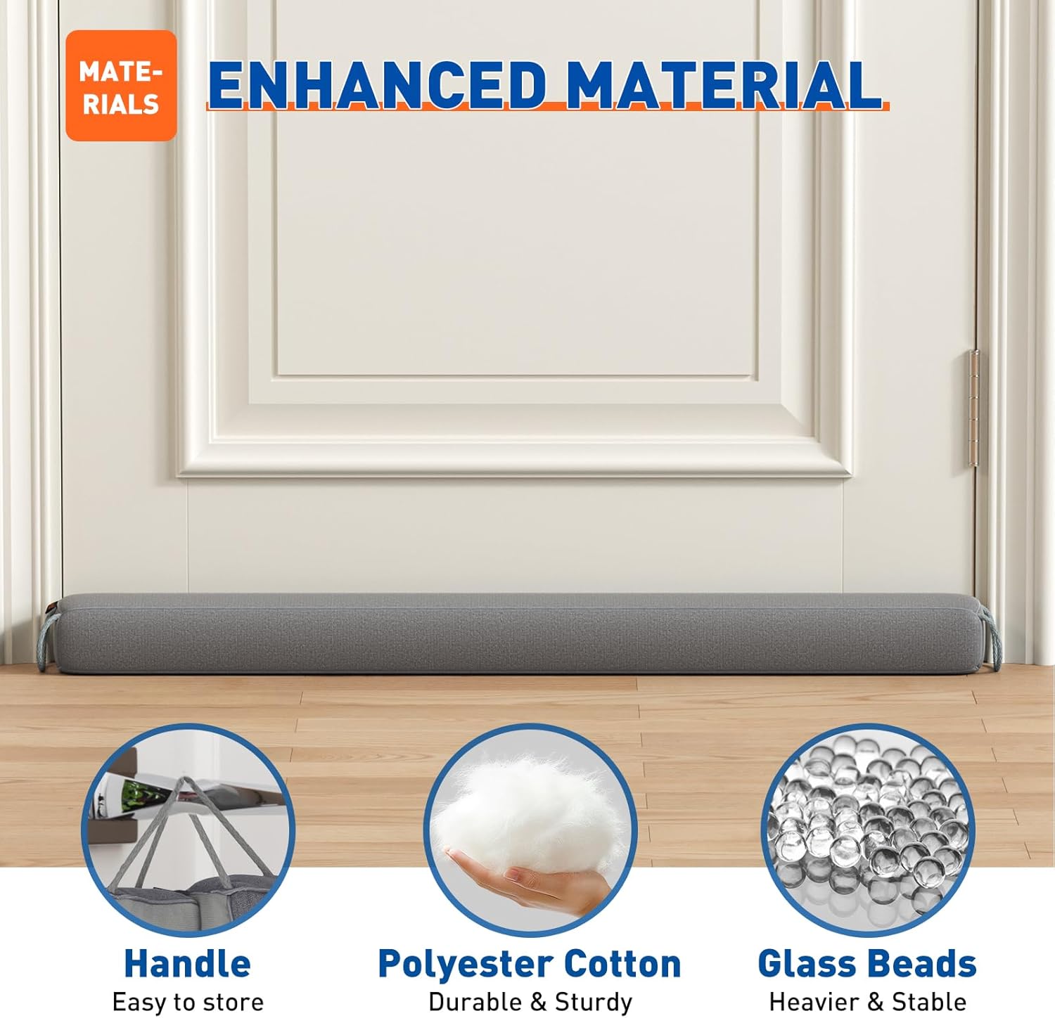 • Weighted Door wind stopper - The door draft stopper totally 2.18 lb filled with polyester wadding and especially add glass beads, ensure the door blocker stick to the door without being moved.