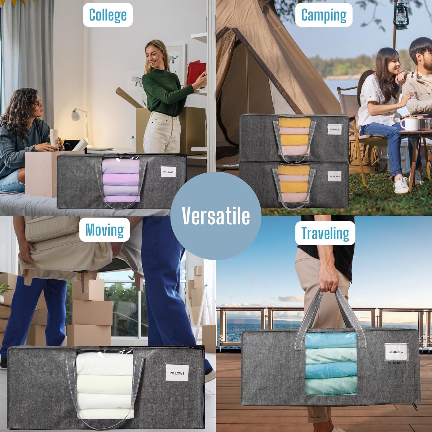 - Instant Identification – Featuring a transparent (window) design alongside a handy tag pocket, this storage bag simplifies identifying the contents within, ensuring swift access to your stored items, be it college dorm essentials, camping gear, or various household items. Ideal for moving, organizing, and storage tasks, this versatile bag guarantees that no matter where you store your belongings, they remain neatly organized and easily identifiable.
