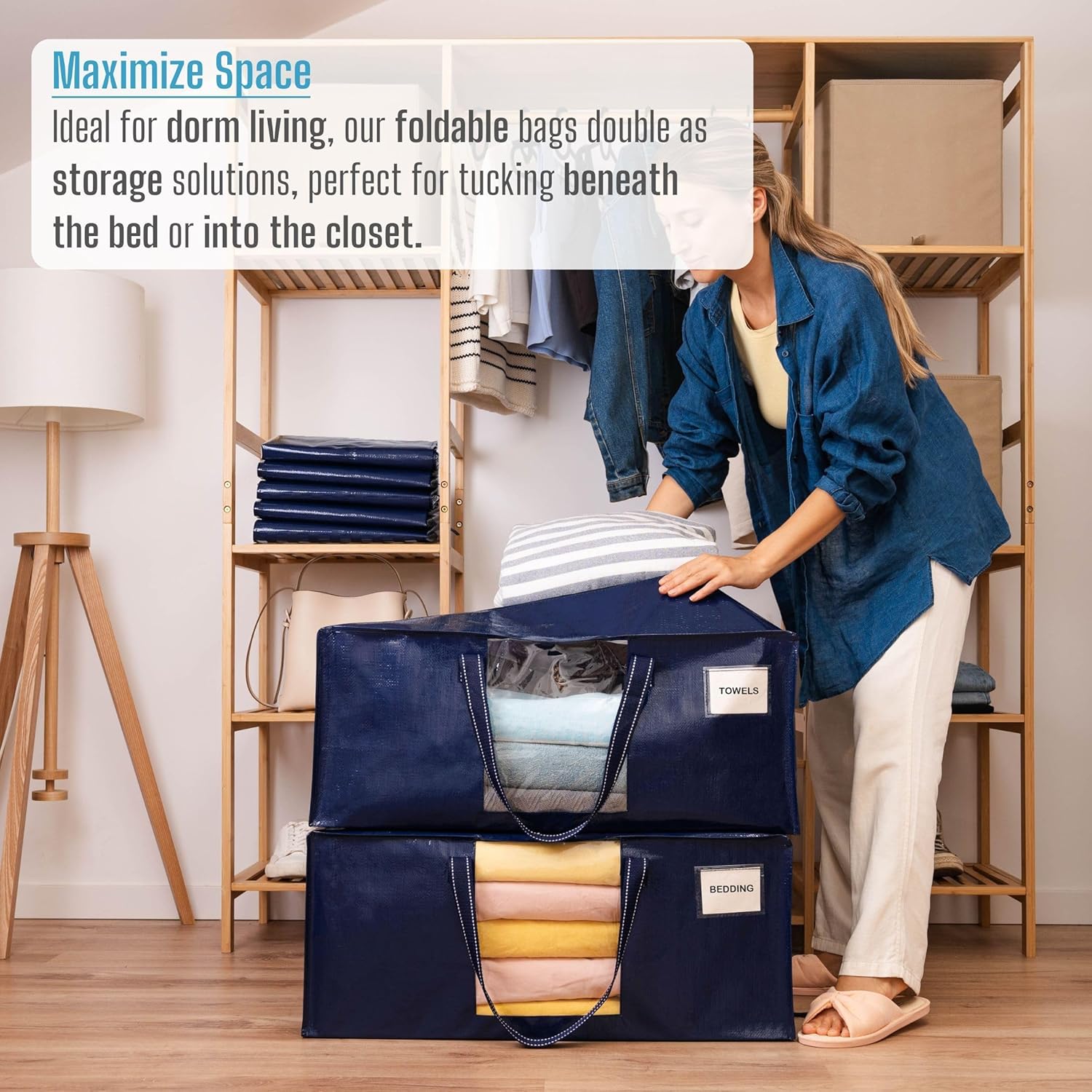 VENO 6 Pack Moving Bags Extra Large Storage Bags for College Move-In, Heavy-Duty Storage Totes, Packing Boxes, and Wardrobe Moving Supplies - Durable Laundry Bags for Clothes (Blue w/Window, 6 Pack)