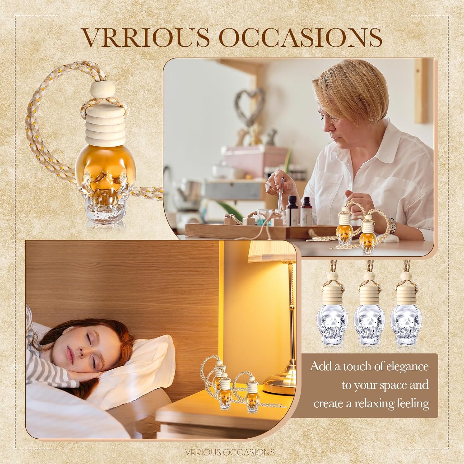 BBTO 50 Pcs Hanging Car Air Freshener Car Diffuser Bottles Empty Glass Perfume Bottle Freshener Diffuser Bottle Pendant for Essential Oil Fragrance Aromatherapy Bottle Ornament(Skull)