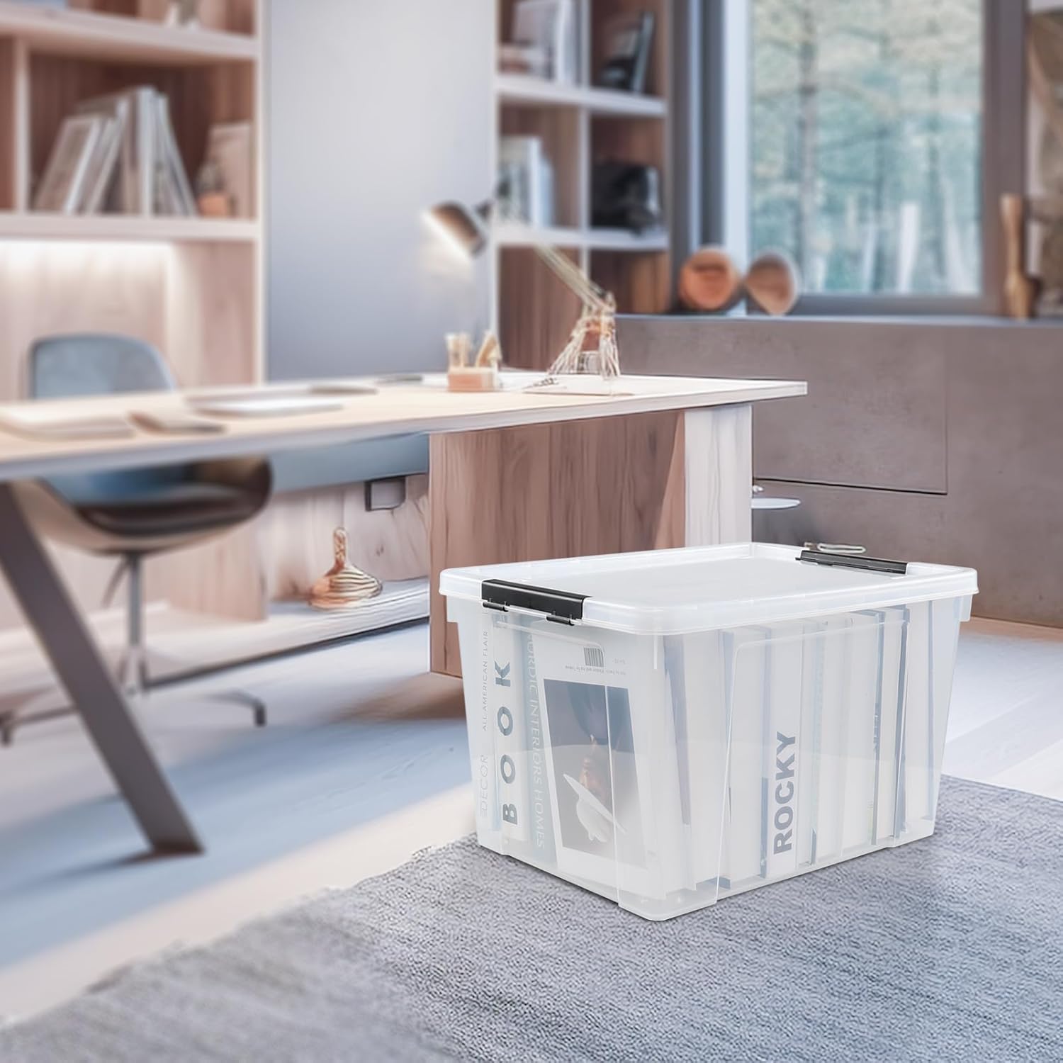 4-Pack 50 L Clear Plastic Storage Bin, Large Clear Latch Box with Wheels