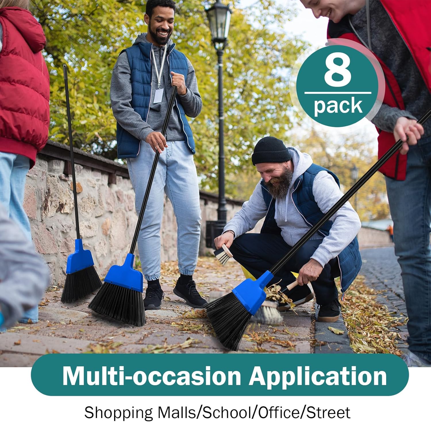 8 Pcs Outdoor Broom for Floor Cleaning 54 Inch Commercial Heavy Duty Broom Long Handle Kitchen Household Angle Brooms for Sweeper Sweeping Indoor Dust Hair Cleaner Corn Shop(Blue)
