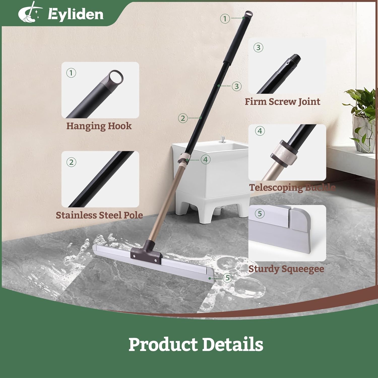 Eyliden Rubber Floor Squeegee, Quick Water & Foam Removal Broom | Heavy-Duty, Dual-Action Push & Scrape, Squeegee for Shower Glass Concrete Garage Commercial Epoxy Floors