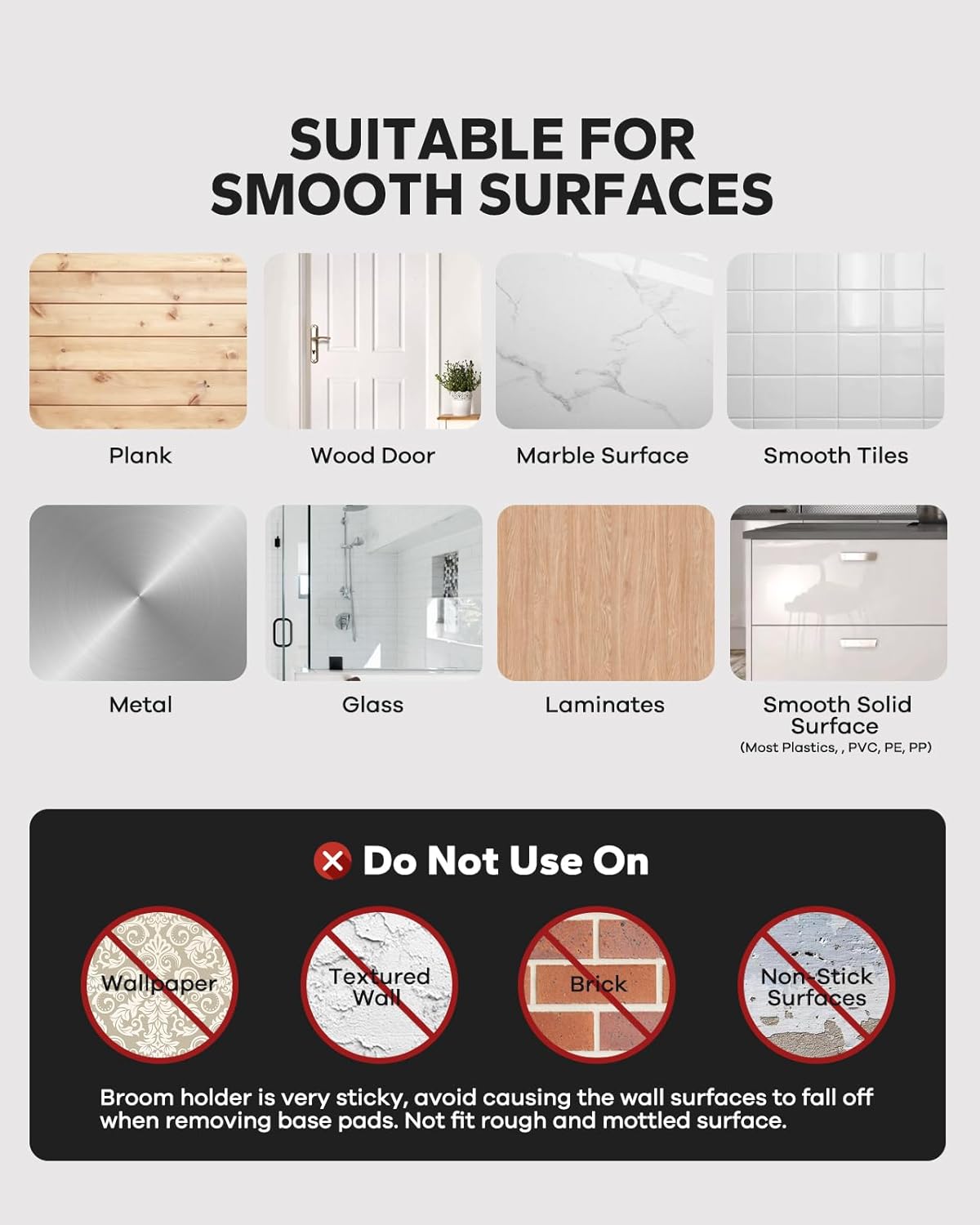 • Waterproof Non-Slip - You don't have to worry about the broom and dustpan hanger being stained with water or falling off, it can operate efficiently for a long time.
