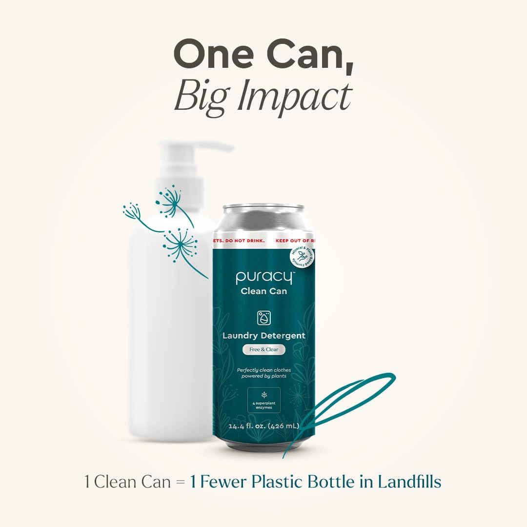 Puracy Liquid Laundry Detergent Clean Can Refill - Enzyme-Powered Liquid Laundry Detergent Concentrate, Natural Laundry Detergent Seen on TikTok, Non-Toxic (Free & Clear, 14.4 fl)