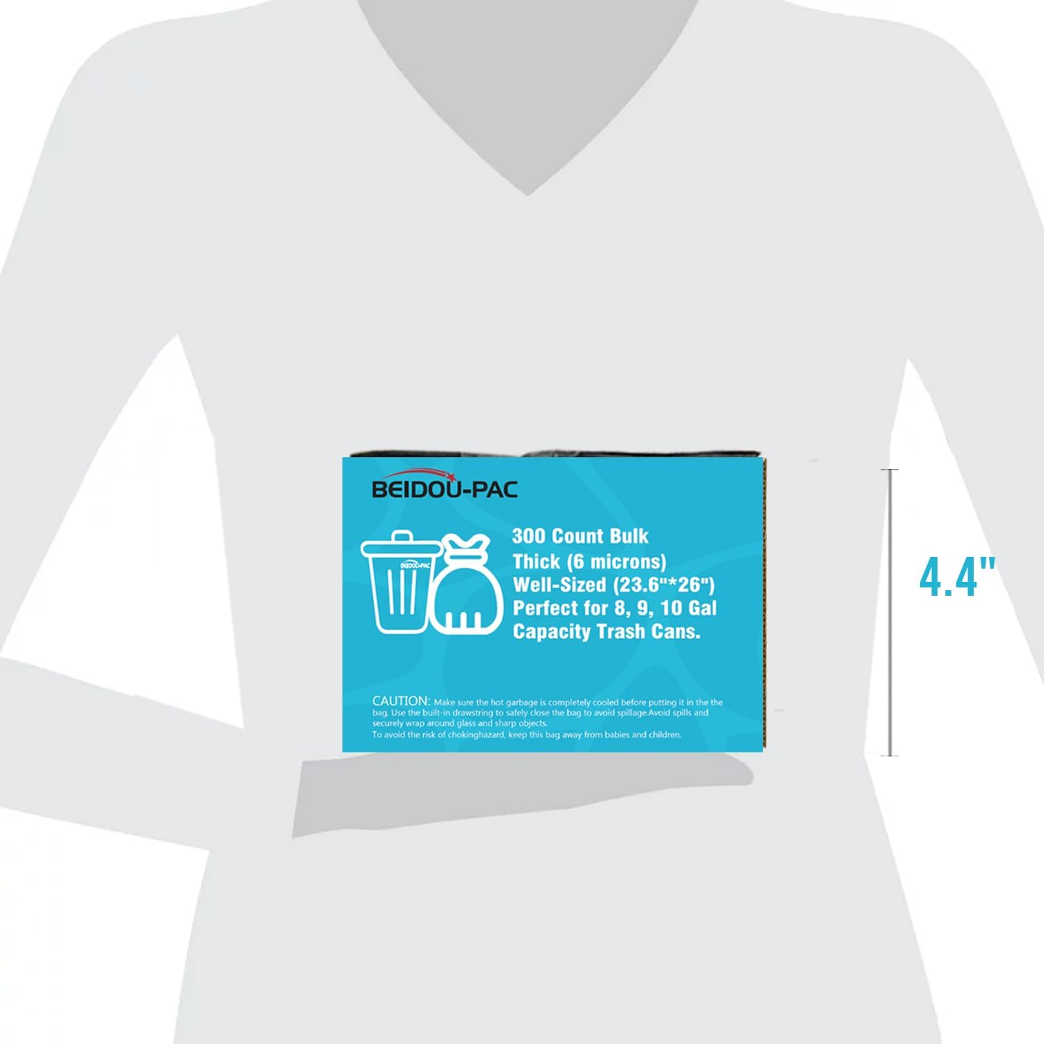 • 1, Product information: BEIDOU-PAC 8-10 gallon clear plastic recycling Can Liners, Size: 23.6"*26"x 6 mic, Total 300 clear bags bulk (50PCS /ROLL , 6 CORELESS ROLLS/CTN), Perfect for 8, 9, 10 Gal Capacity Office, Bedroom and Kitchen Wastebasket trash bins.