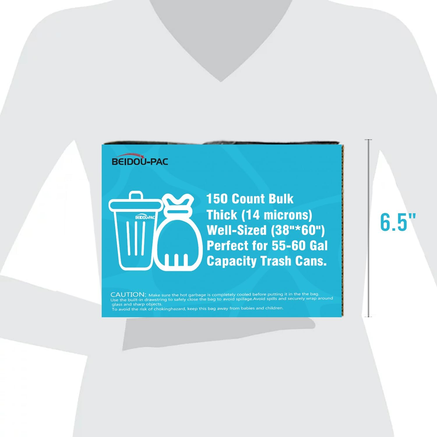 • 1, Product information: BEIDOU-PAC 55-60 gallon large clear plastic recyclable garbage bags, Size: 38"* 60"x 14 mic, Total 150 clear bags bulk (25 PCS/ROLL , 6 CORELESS ROLLS/CTN), Perfect for 55-60 Gal Capacity Office, commercial, industrial or residential waste.