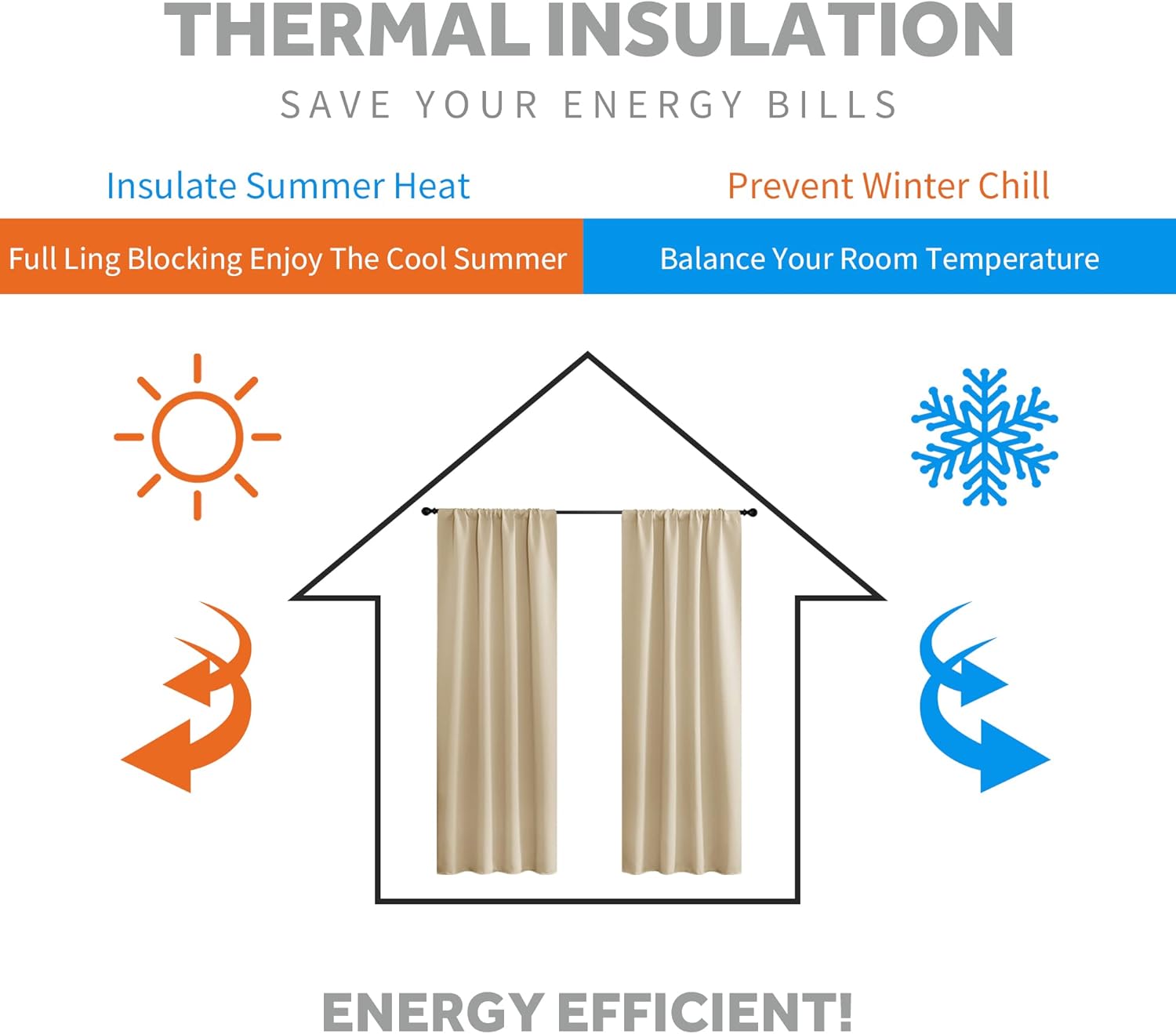 • ENERGY SMART - Curtains are work well on balance the temperature inside and outside by insulating summer heat and winter chill, so that these room darkening curtains can reduce the energy waste and save the daily bill effectively.
