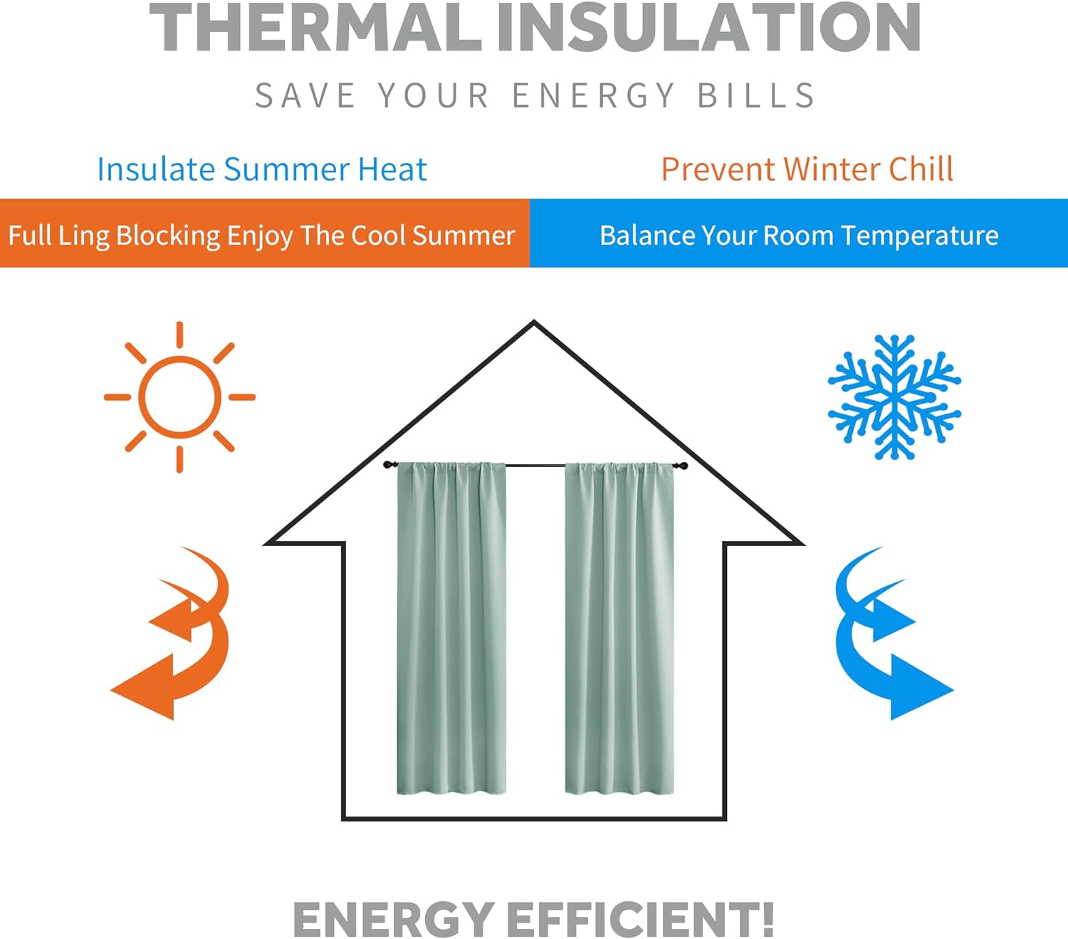 • ENERGY SMART - Curtains are work well on balance the temperature inside and outside by insulating summer heat and winter chill, so that these room darkening curtains can reduce the energy waste and save the daily bill effectively.