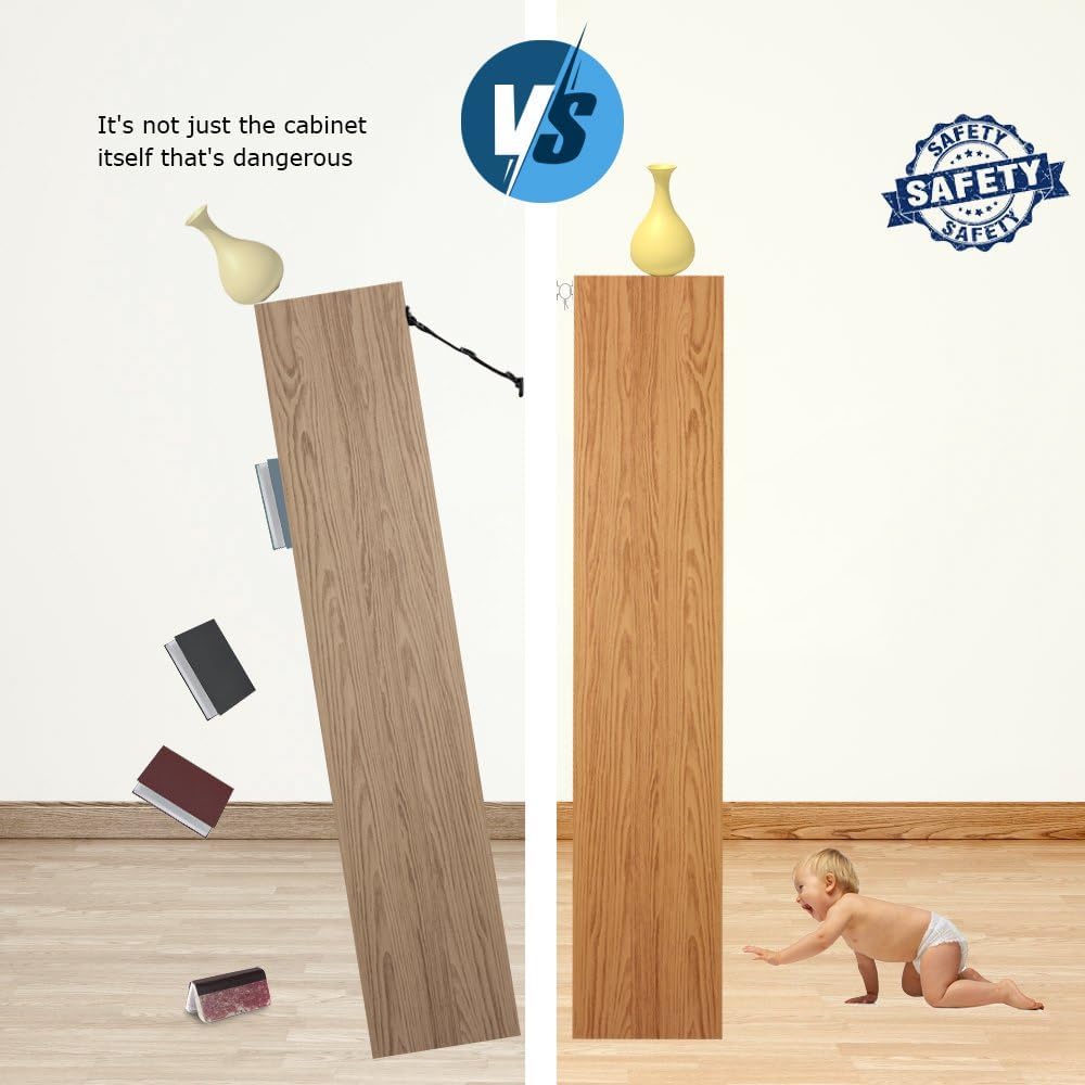 • Our furniture wall straps are made of high-quality, heavy-duty stainless steel material that provide excellent stiffness, strength, and flame-retardant properties. They effectively enhance the safety and stability of your furniture