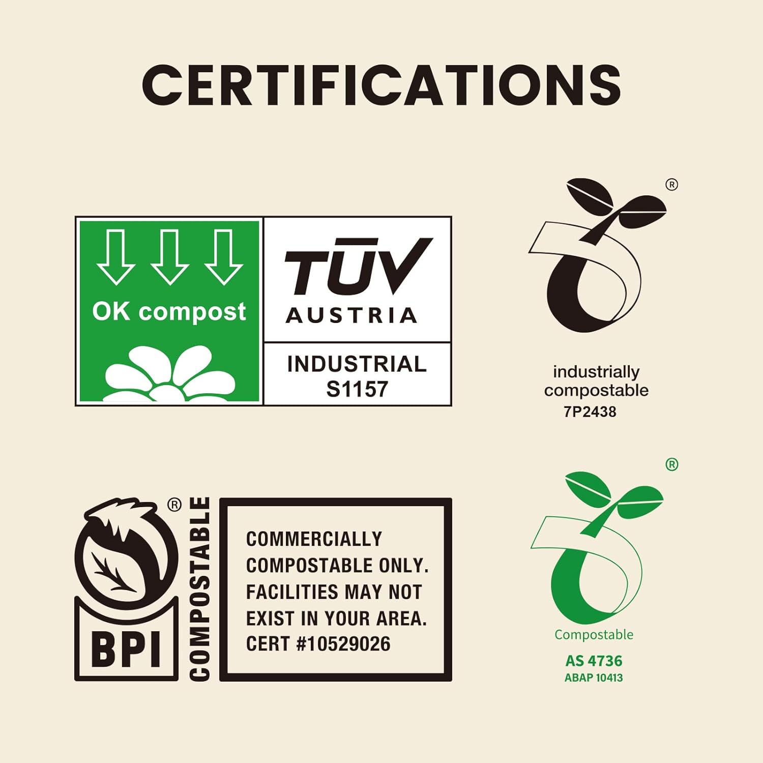• Please note: Commercial composting facilities may not be available in all areas. We recommend verifying local availability to ensure compliance with composting requirements