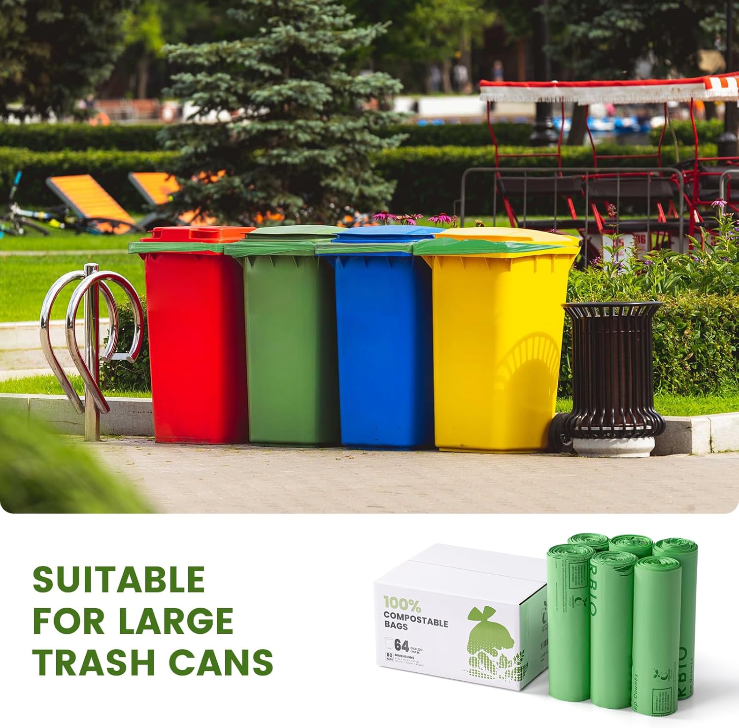 SUPERBIO 64 Gallon Compostable Yard Waste Bags, Lawn & Leaf Bags, 242.3L (60 Count Bulk), Heavy Duty 1.57 Mils, BPI and OK compost INDUSTRIAL