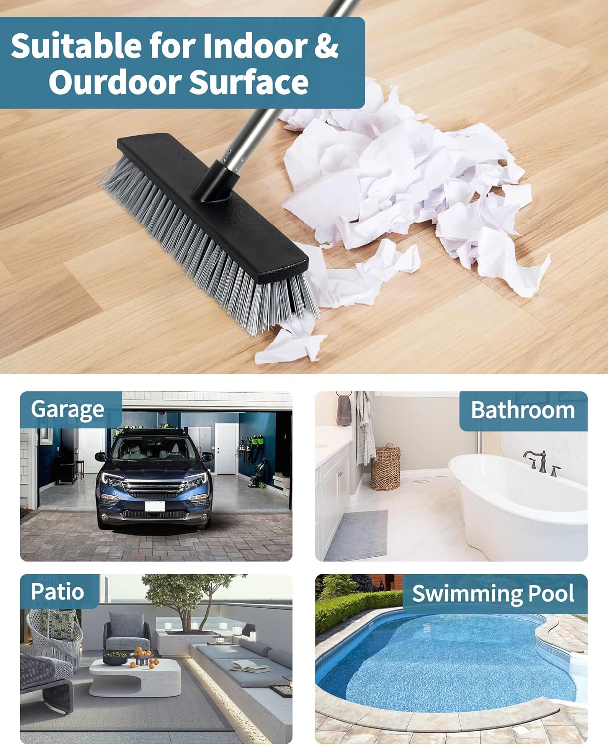 • Versatile Use: Great broom for scrubbing! Push Broom Bristles won't deform or fall apart when scrubbing. Suitable for various floor types, such as tile, marble, stone and wood floors in your home bathroom/kitchen/patio/garage/deck, and more.