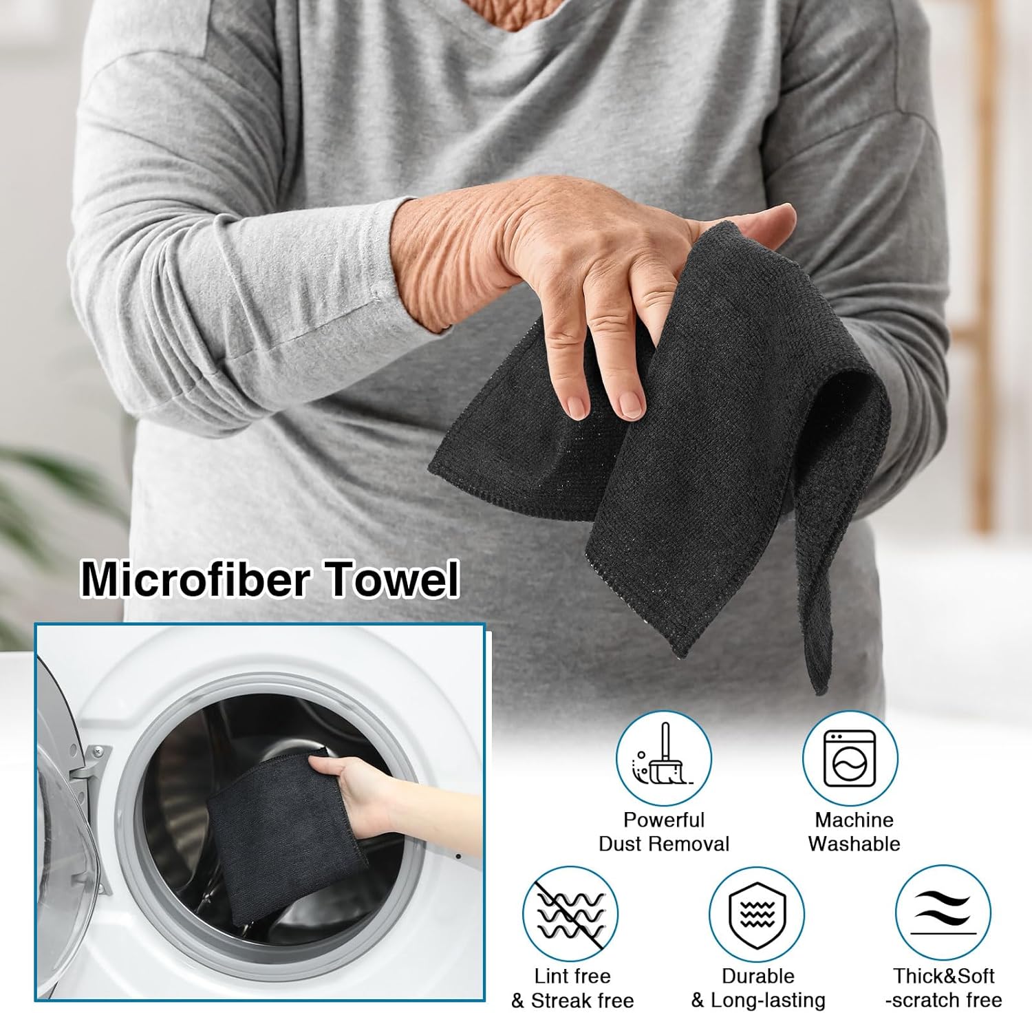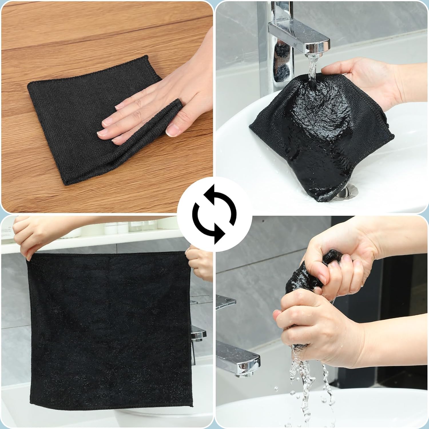 • Large Quantity: you will receive 200 pieces black microfiber cleaning cloth, which come in a vacuum sealed package; Each measures about 12 x 12 inches, ideal for dusting, scrubbing, wiping and drying and works, great for home, offices, kitchen, restaurants, hotels, cars, shop, commercial or other cleaning jobs